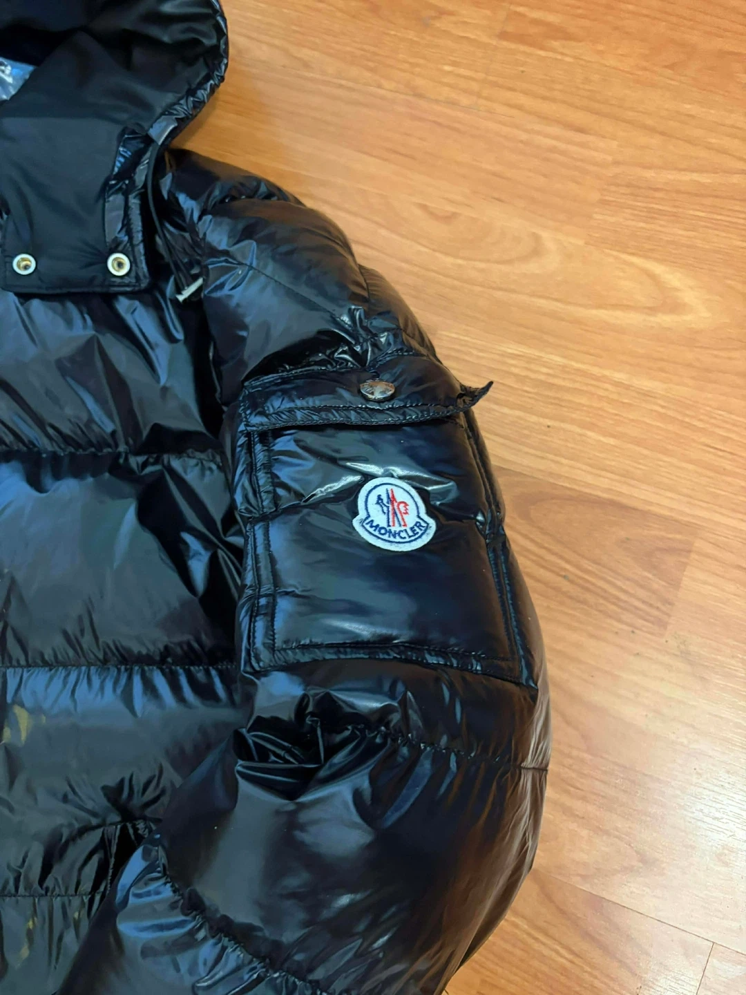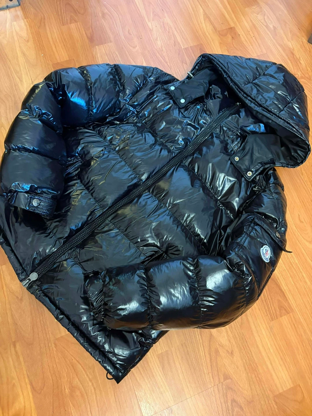 Selling a Moncler black padded down jacket. It's in great condition and perfect for the cold weather! The jacket is very stylish and comfortable, making it a great addition to your wardrobe
