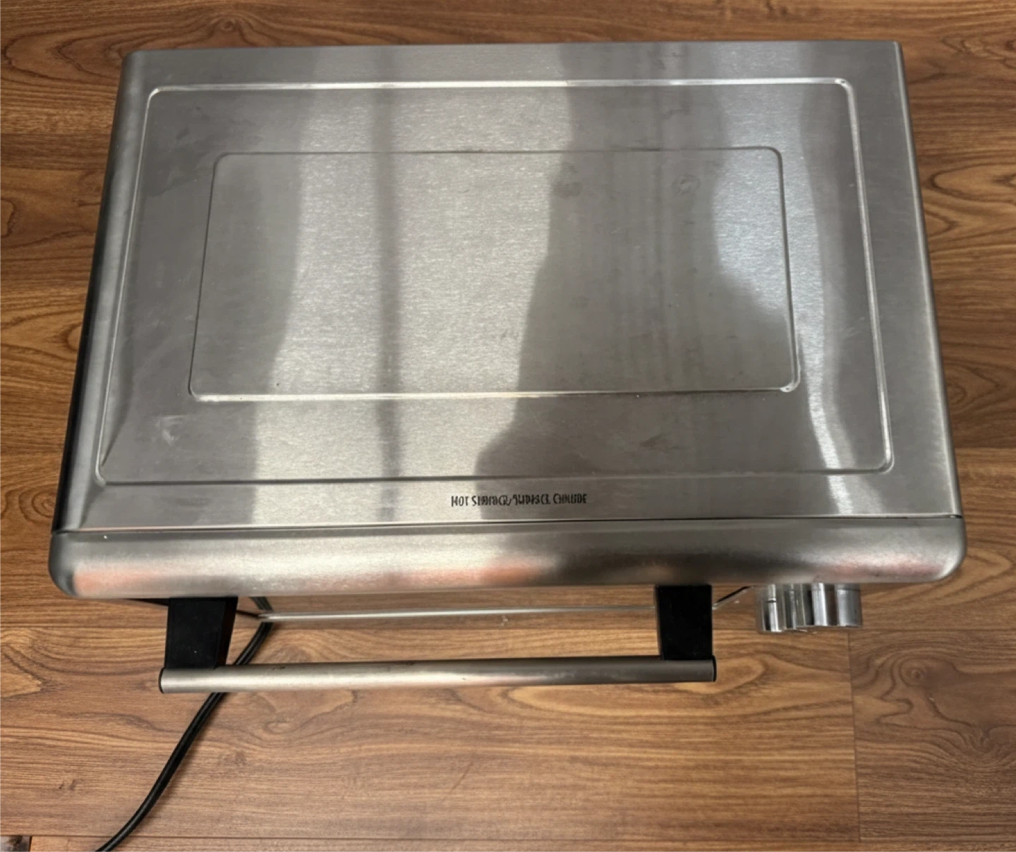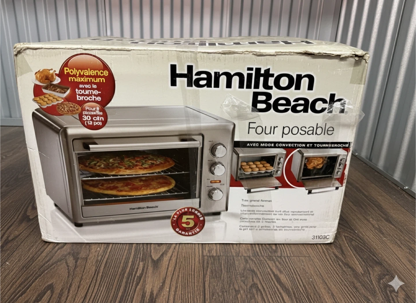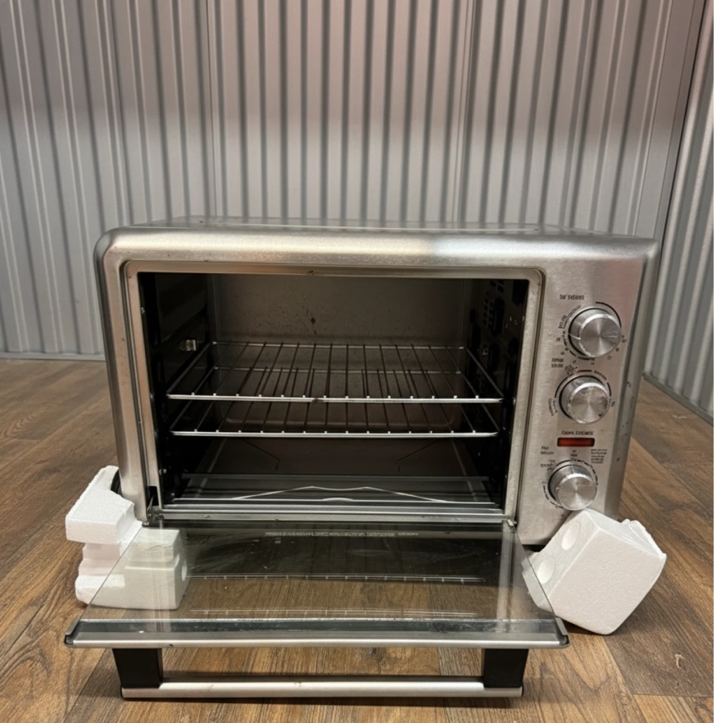 • Extra-Large Capacity: Fits two 12” pizzas, two 9x13” casseroles, or two cake pans. • 4 Cooking Modes: Bake, Broil, Convection, and Rotisserie. • Rotisserie Function: Can roast a whole 5 lb. chicken (meat self-bastes as it turns). • Convection Setting: Bakes faster and more evenly than traditional ovens. • Dual Racks: Includes 2 adjustable cooking racks to cook multiple items at once. • Timer: 2-hour timer with auto-shutoff for safety. • Condition: Very clean, lightly used, and comes in the original box. Includes: • Countertop Oven • 2 Cooking Racks • Baking Pan / Drip Tray • Original Box