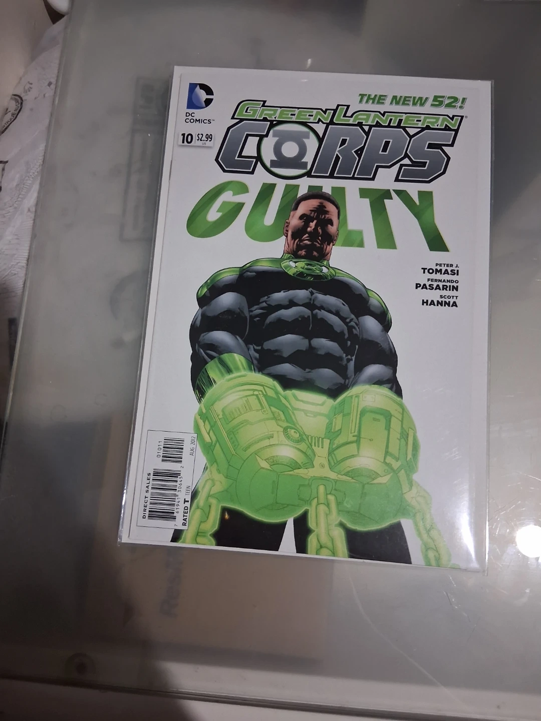 Selling Green Lantern Corps number 10 comic book. It is from The New 52! series. The title of this issue is Guilty. Written by Peter J. Tomasi, Fernando Pasarin, and Hanna. Unopened still in packaging