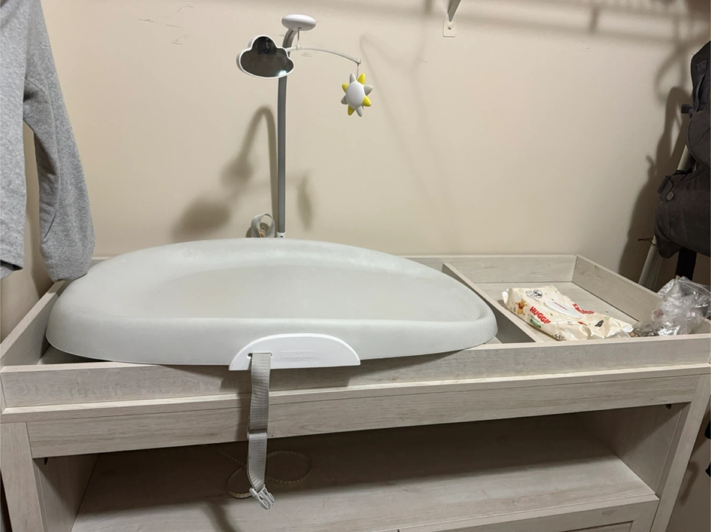 Selling a Skip Hop changing pad with a mobile in grey! It's in great condition and would be perfect for a nursery. The original price was $109.99.