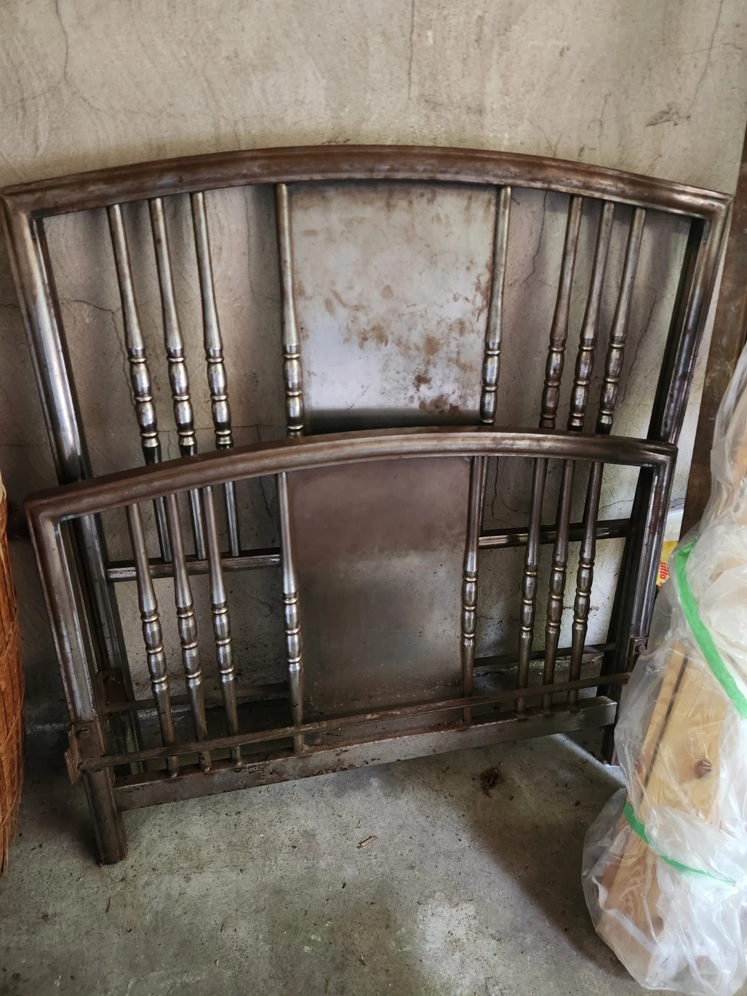 Selling a metal bed frame in an antique style! It's a unique piece that could add some character to your bedroom.
