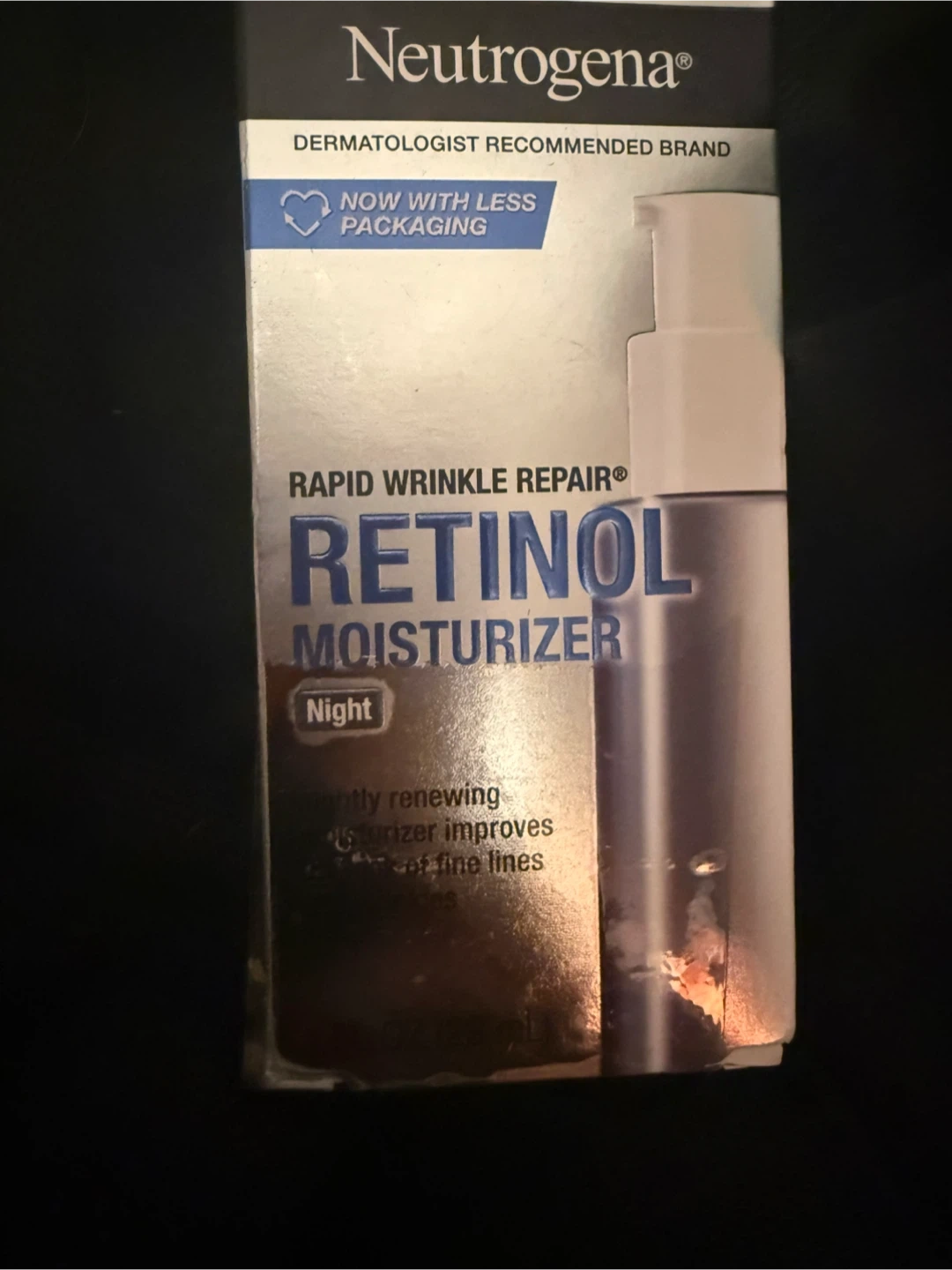 Selling a Neutrogena Rapid Wrinkle Repair Retinol Moisturizer. It's a night cream designed to gently renew and improve the look of fine lines. The packaging is new with less material, which is great for the environment! Dermatologist recommended brand