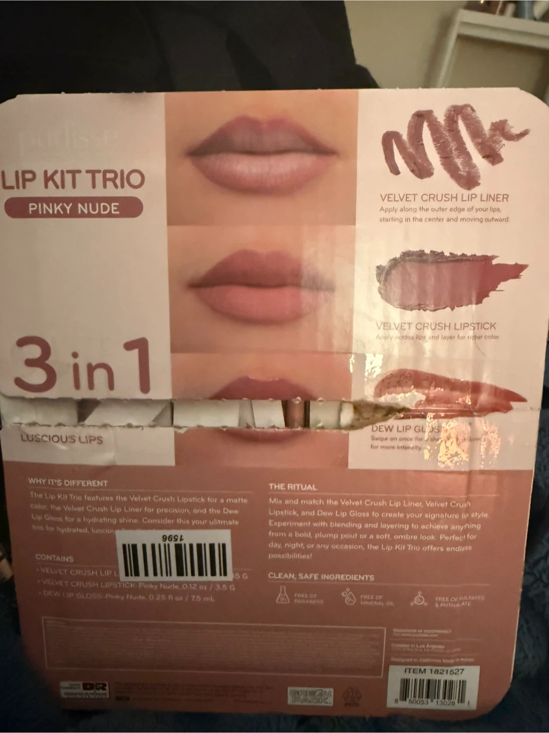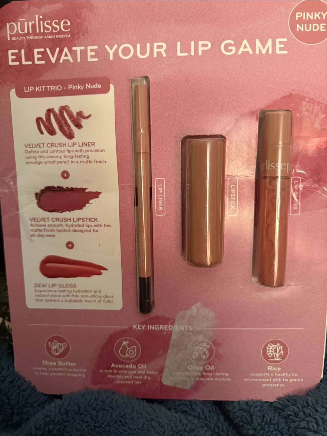 Looking to elevate your lip game? This Purlisse Lip Kit Trio in Pinky Nude is perfect for creating luscious lips! The kit contains a Velvet Crush Lip Liner, Velvet Crush Lipstick, and Dew Lip Gloss. Mix and match to create your signature style for any occasion