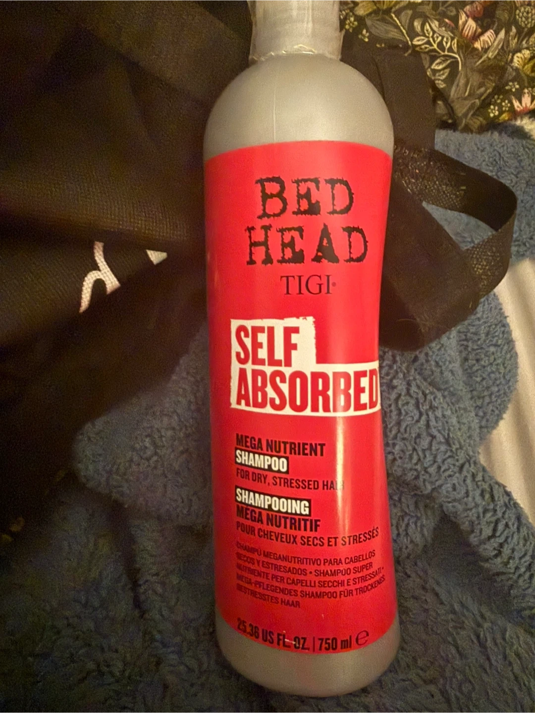 Selling a bottle of Bed Head TIGI Self Absorbed Mega Nutrient Shampoo! This is a mega nutrient shampoo designed for dry and stressed hair. The bottle contains 750ml, or 25.36 US fl oz.