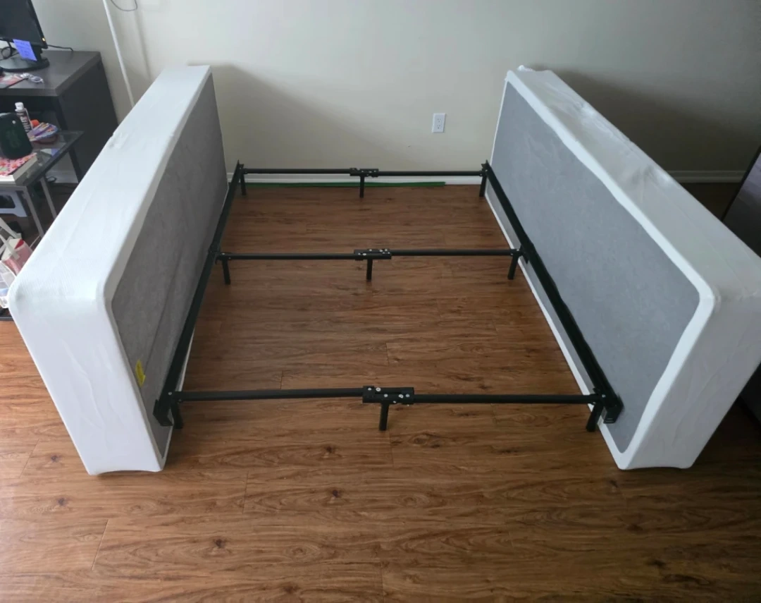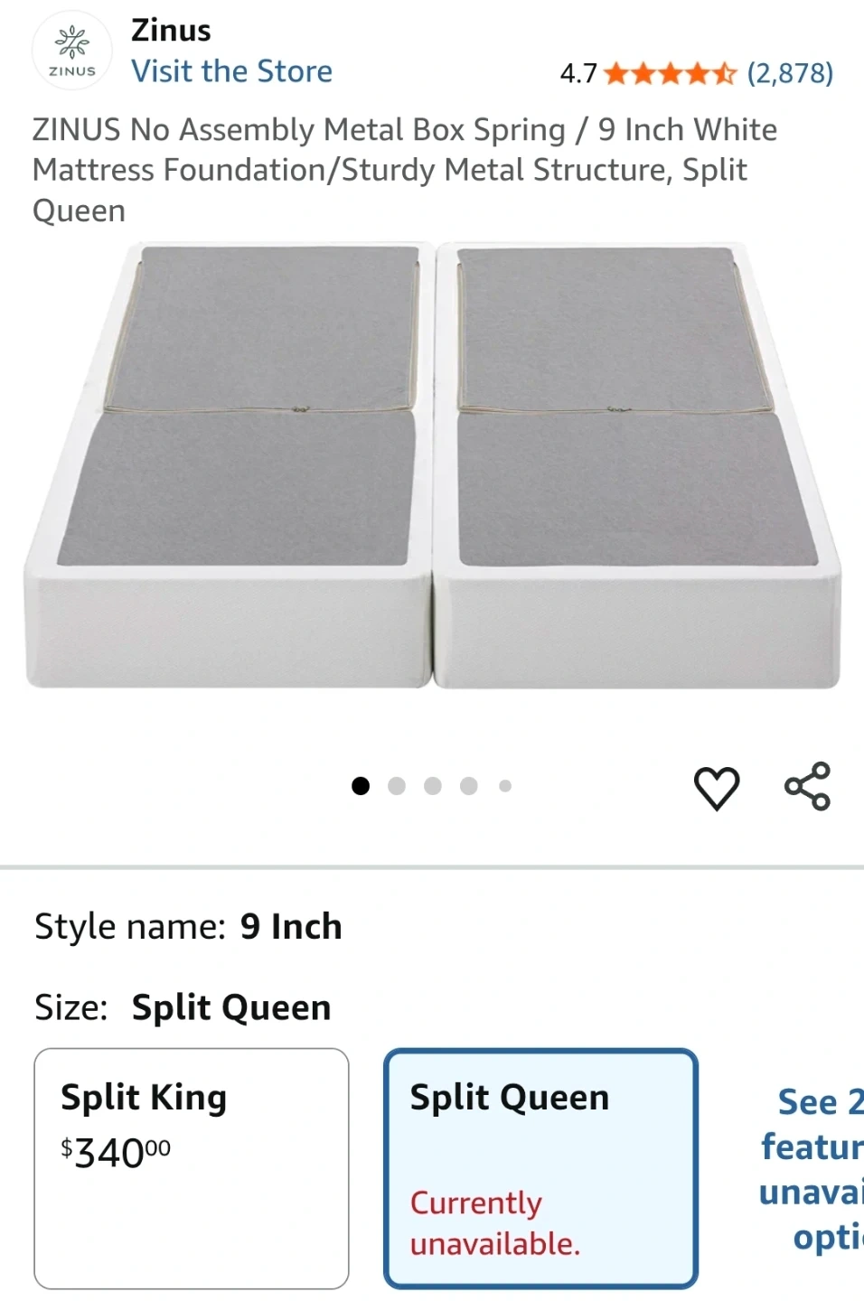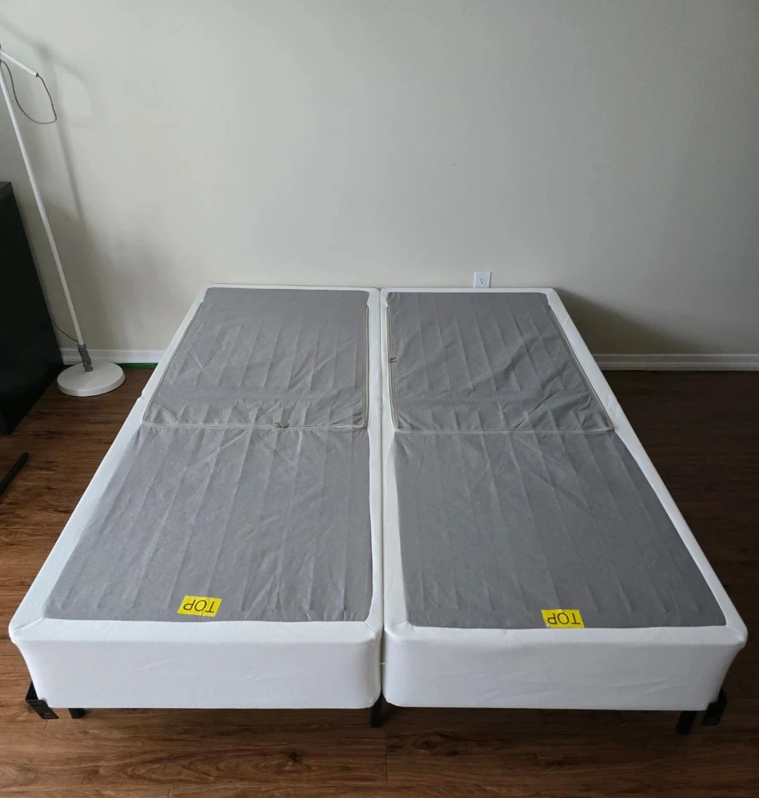 2. Zinus 9" white split box spring (no assembly, easy to move)