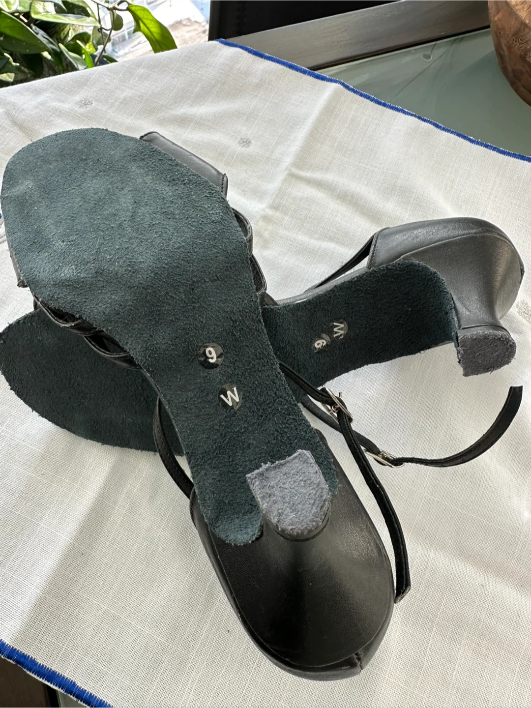 Selling a pair of Dancelife dance shoes in size 9W. They are black leather with a strap and heel. Perfect for dance practice or performance!