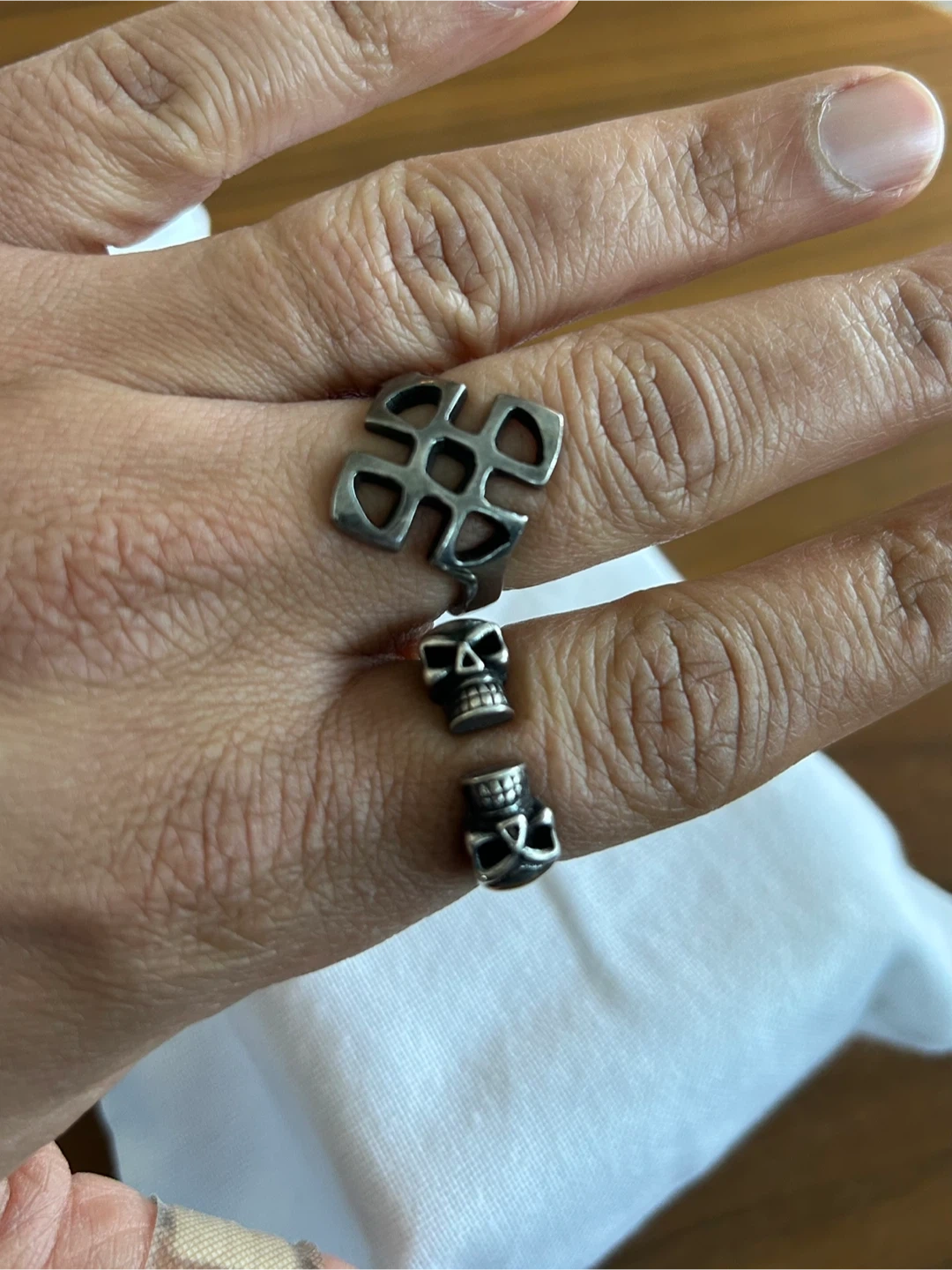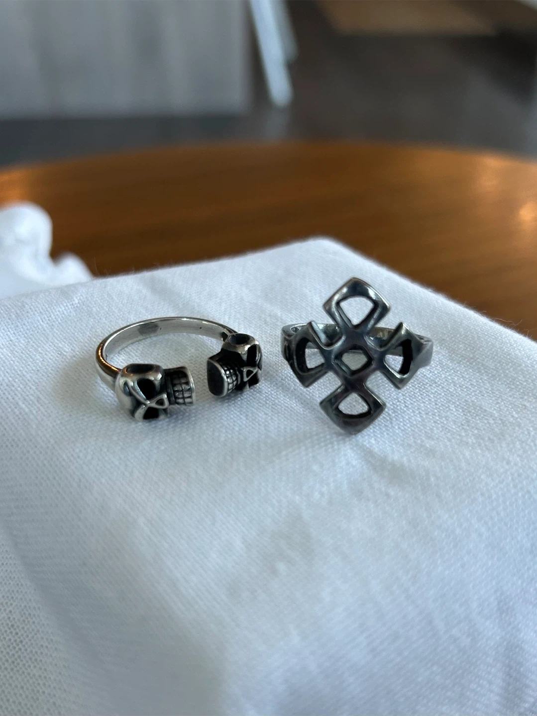 Selling a couple of rings, one with a skull design and the other with a cross. They were bought in a vintage shop and are made in pure 925 sterling silver. Would make a great addition to your jewellery collection!