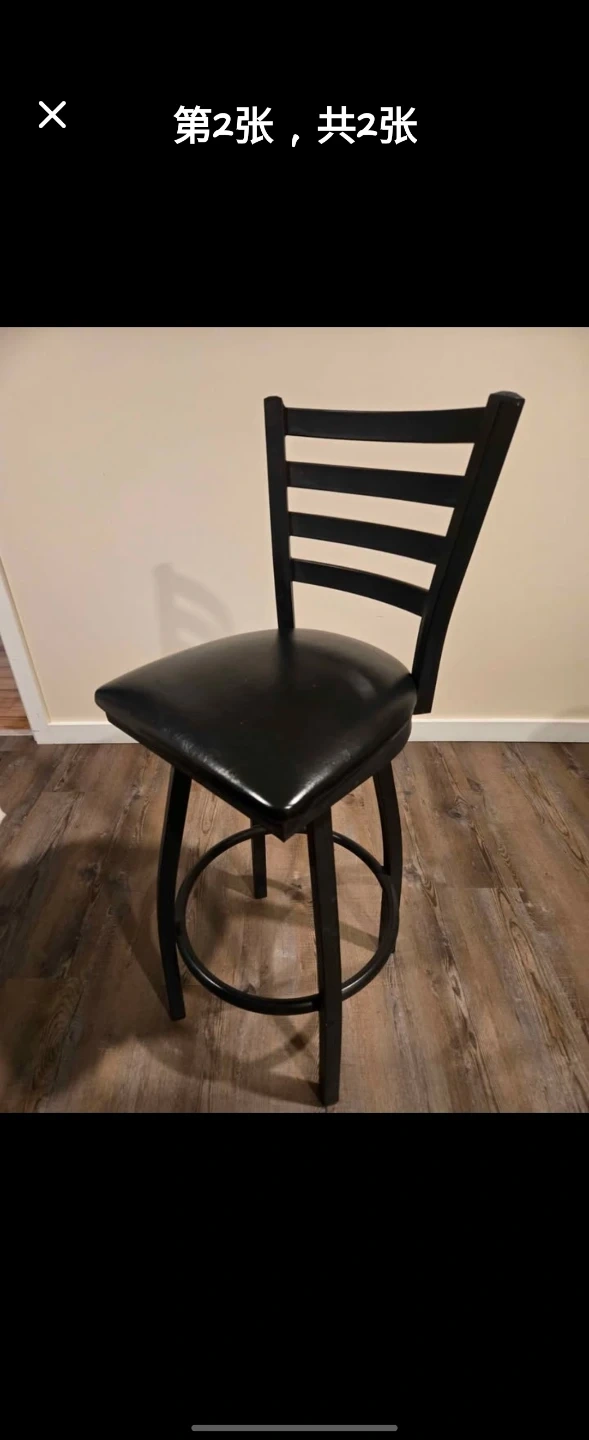 Selling a black swivel bar stool. It has a black metal frame and a black padded seat. Perfect for your kitchen island or bar area!