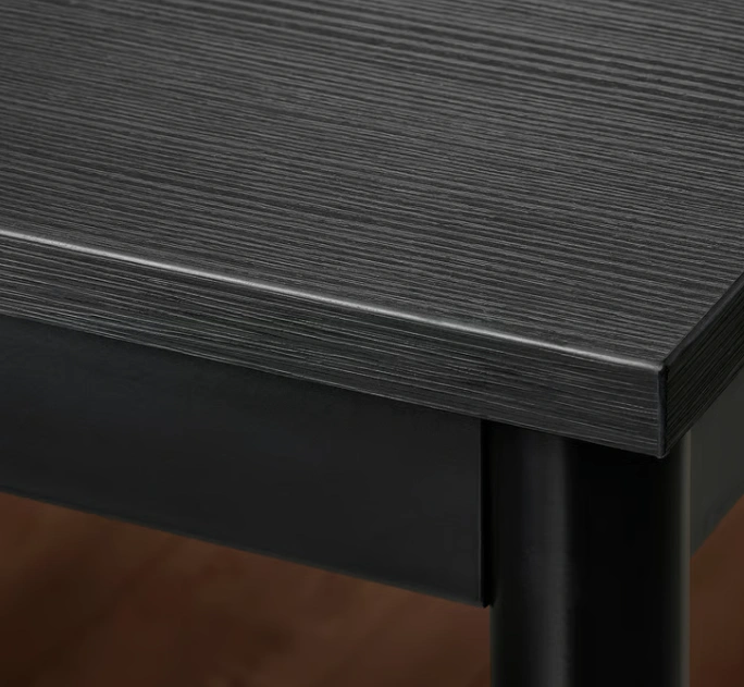 Black IKEA dining table with matching black chairs. Clean, sturdy, and perfect for small apartments, condos, or compact dining spaces.