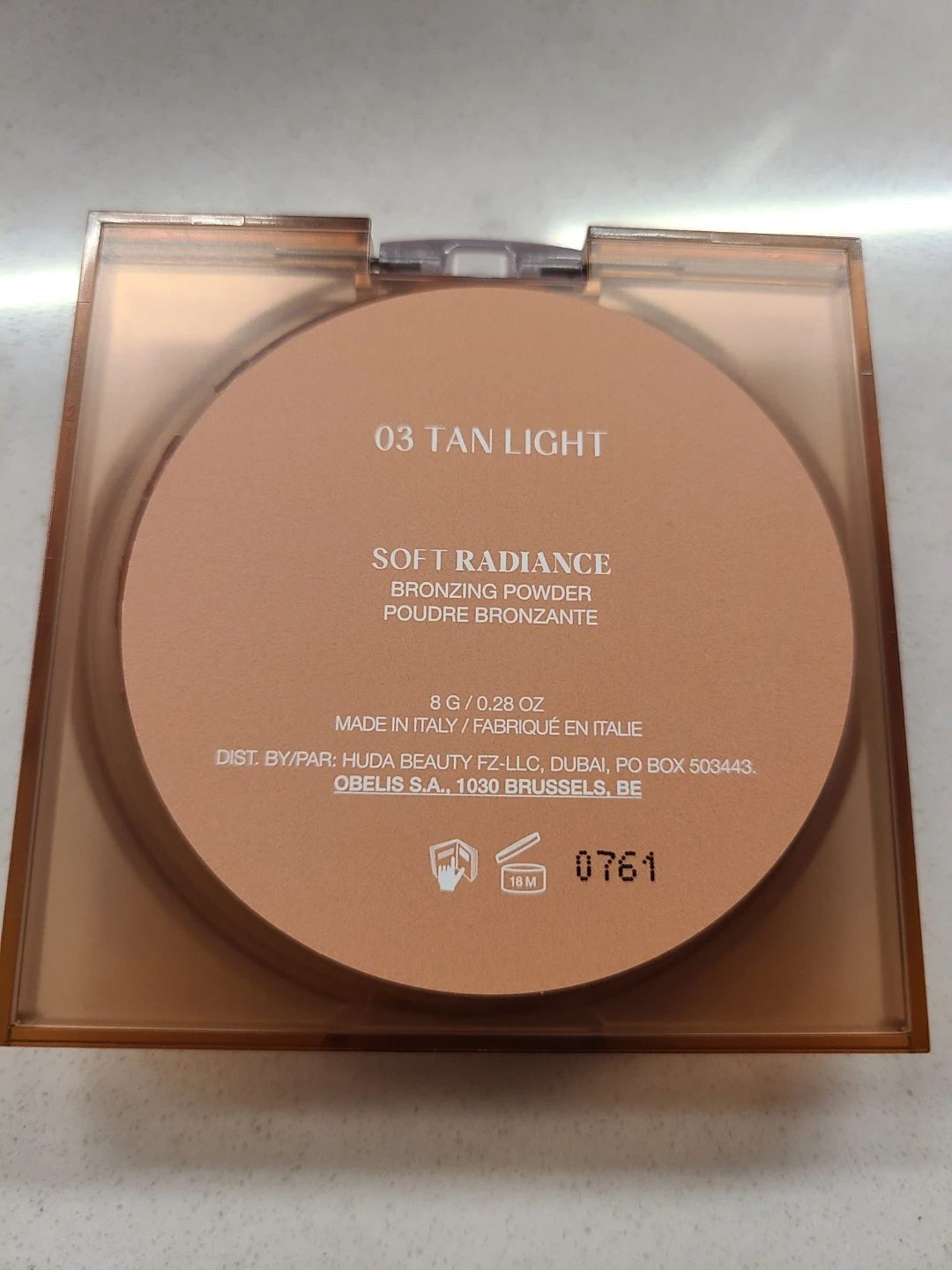 Glowish by Huda Beauty Soft Radiance Bronzing Powder in the shade 03 Tan Light. It's a lovely bronzing powder that gives a soft, radiant glow. The powder weighs 8g / 0.28 oz. It is made in Italy.