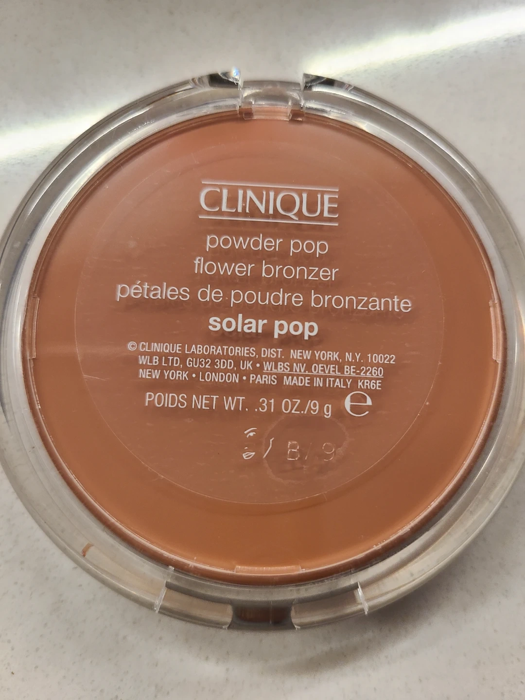 Clinique Powder Pop Flower Bronzer in the shade Solar Pop! It's a beautiful bronzer with a lovely flower design. Net weight is .31 oz / 9 g