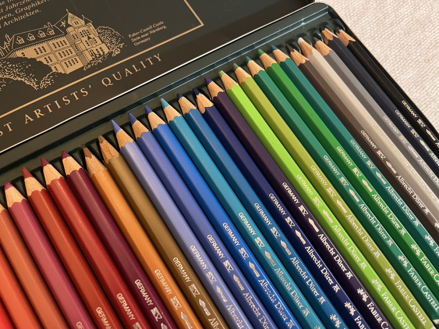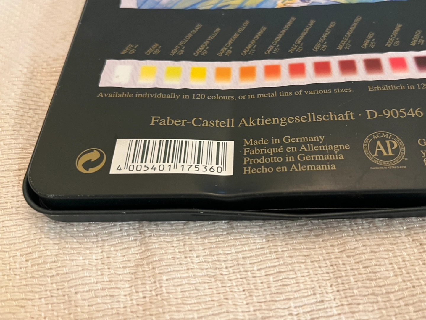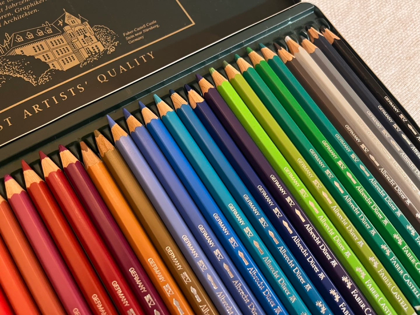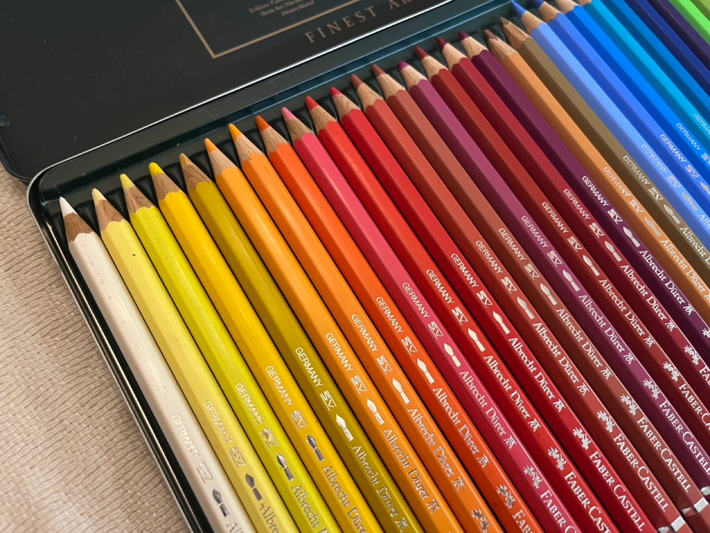 453Albrecht Dürer artists' watercolour pencils • High-quality acid-free pigments in bright colours, unsurpassed lightfastness • Soft, vibrant colour laydown • Fully water soluble lead • Thick 3.8 mm lead • High break resistance • Tin of 36 • Details https://fabercastellshopcanada.ca/products/albrecht-durer®-artists-watercolour-pencils-tin-of-36-117536 **Pickup Only @ Olive Square Park