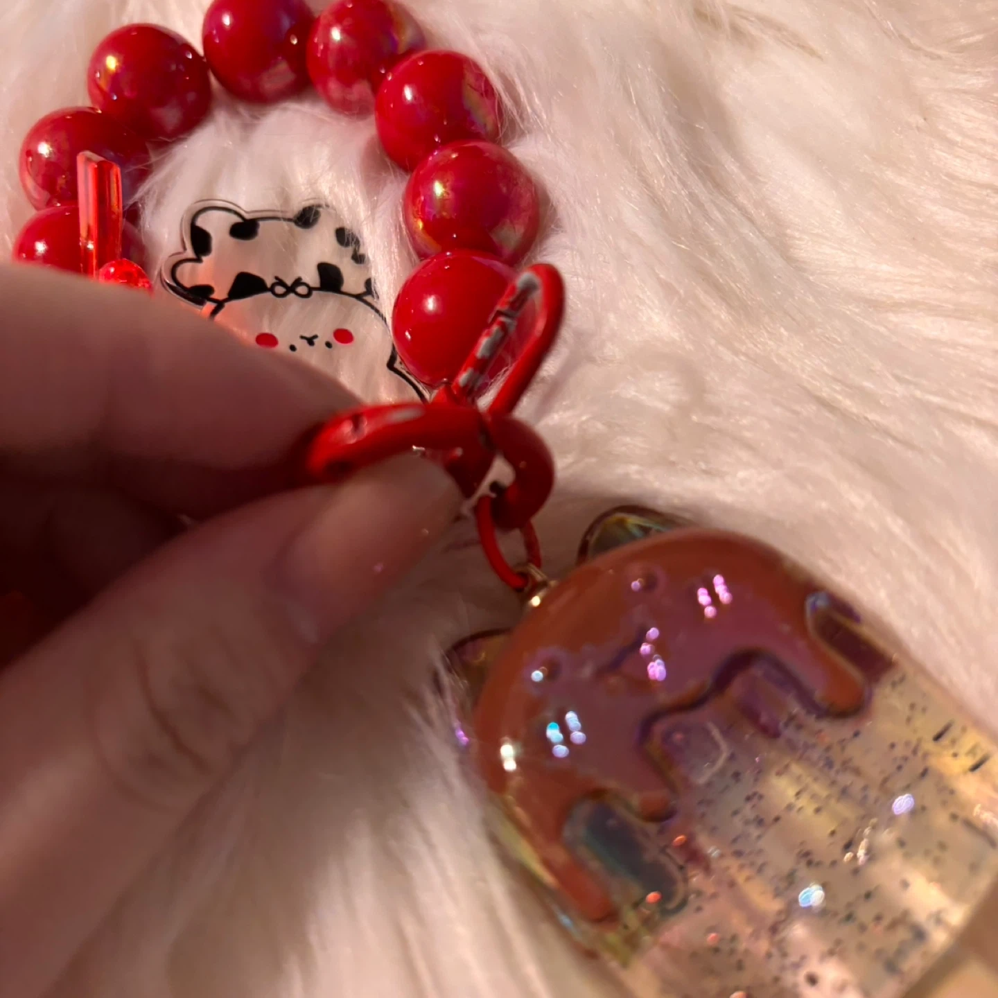 Cute Keychain with Red Beads GUC