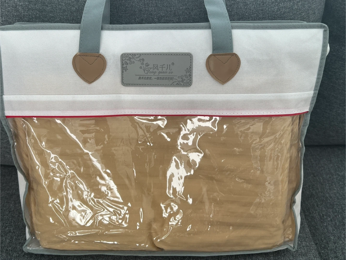 I'm selling a brand new bed sheet set in a lovely tan colour with a subtle striped pattern.