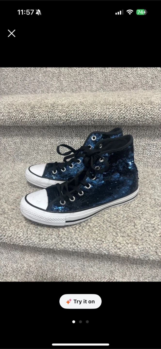 Selling a pair of Converse All Star high top sneakers! They feature a fun sequin design. Great for adding some sparkle to your outfit pick up cash only