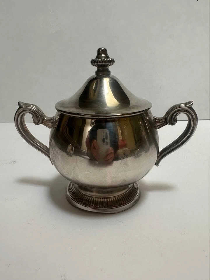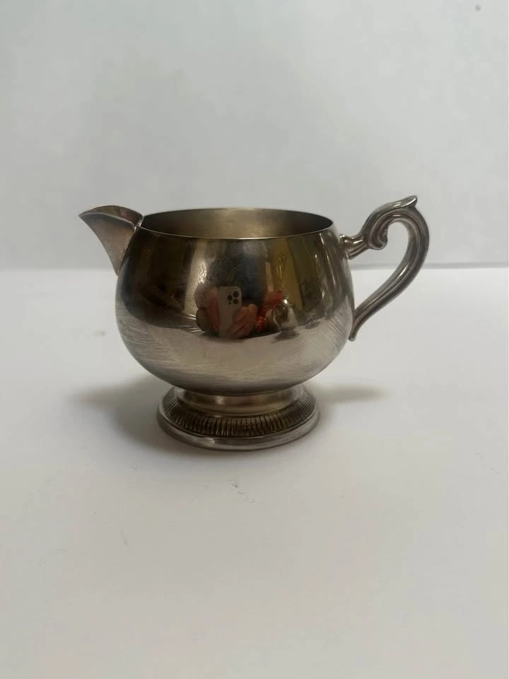 Elevate your hosting with this elegant 6-piece vintage silver-plated coffee and tea service set. The collection includes two ornate pots (one could be for coffee, one for tea), a creamer, a lidded sugar bowl, a waste bowl, and a smaller serving bowl. Each piece features graceful, curved handles, finely detailed spouts, and a classic polished finish with subtle decorative accents. The timeless design and quality craftsmanship make this set a stunning centerpiece for any formal gathering or a beautiful addition to a vintage collection. Light patina present, enhancing the set’s antique charm.