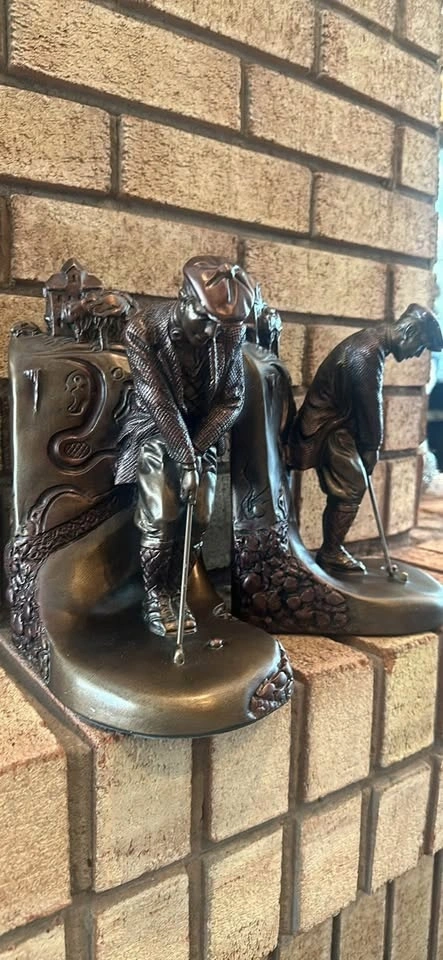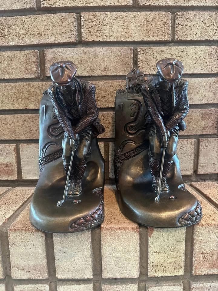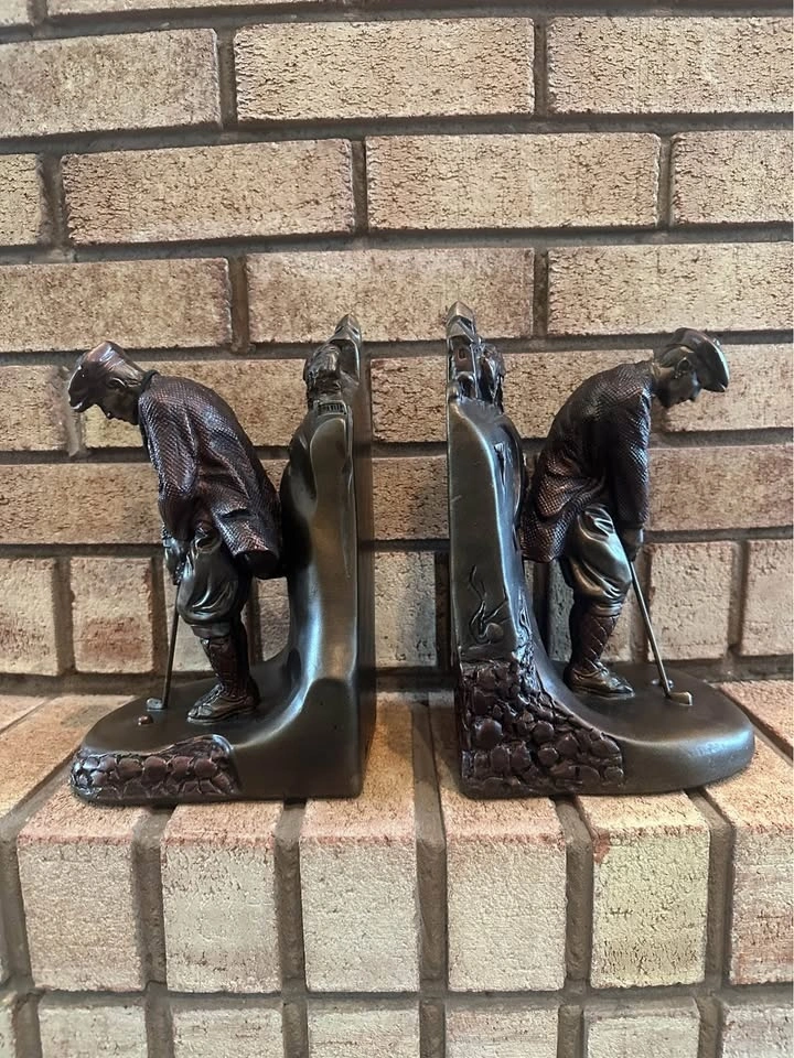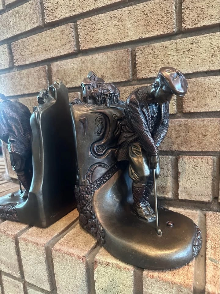 Austin Sculpture 1996 Male Golfer Bronze Book Ends