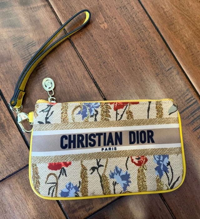 Elevate your accessory game with this chic, gently used Christian Dior pouch featuring a delightful floral pattern and stylish wrist strap. The perfect size for your essentials, it’s a fashionable and functional addition to any outfit. While it has been previously loved, this Dior pouch remains in good condition, ready to add a touch of luxury to your everyday life. If you're seeing this ad, it's still available and waiting for you to discover its beauty!