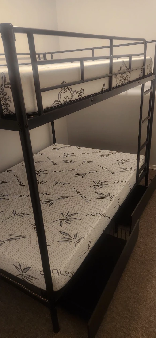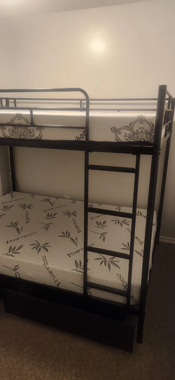 Selling a double over double metal bunk bed frame! It's in great condition, never been slept on and ready for a new home. Perfect for kids' rooms or guest rooms.