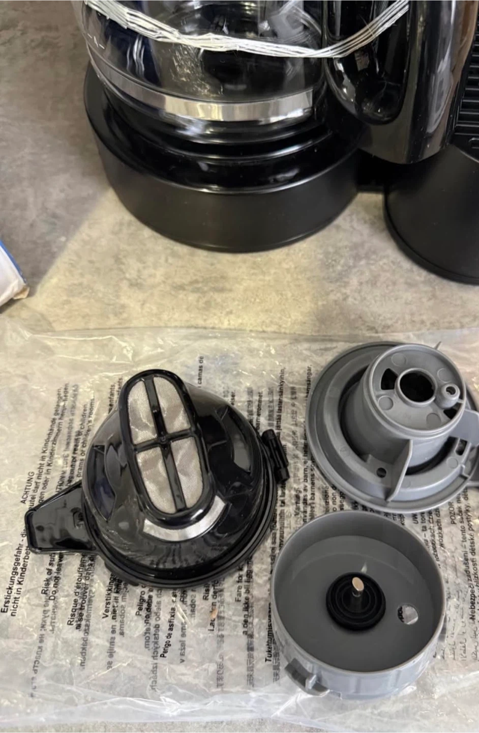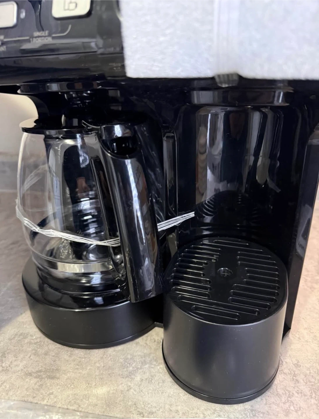 Includes a glass carafe, single-serve pod holder, single-serve brew basket and a cup rest