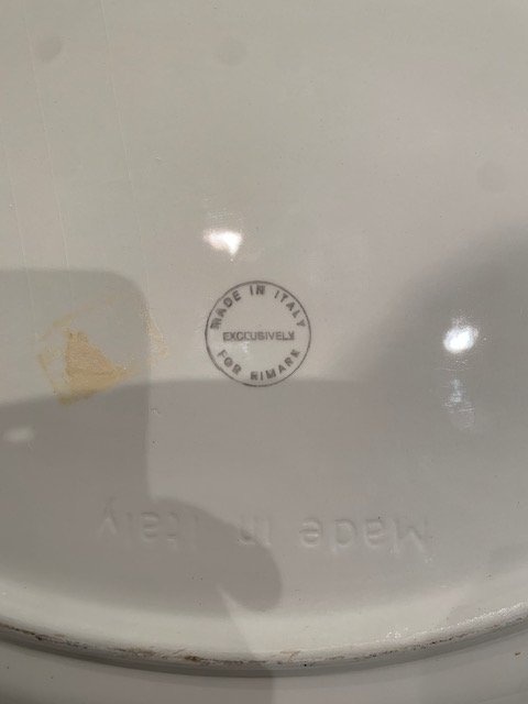 This is a vintage Himark Italian ceramic serving bowl or platter with a rose/flower motif, part of the "Due Torri" collection.