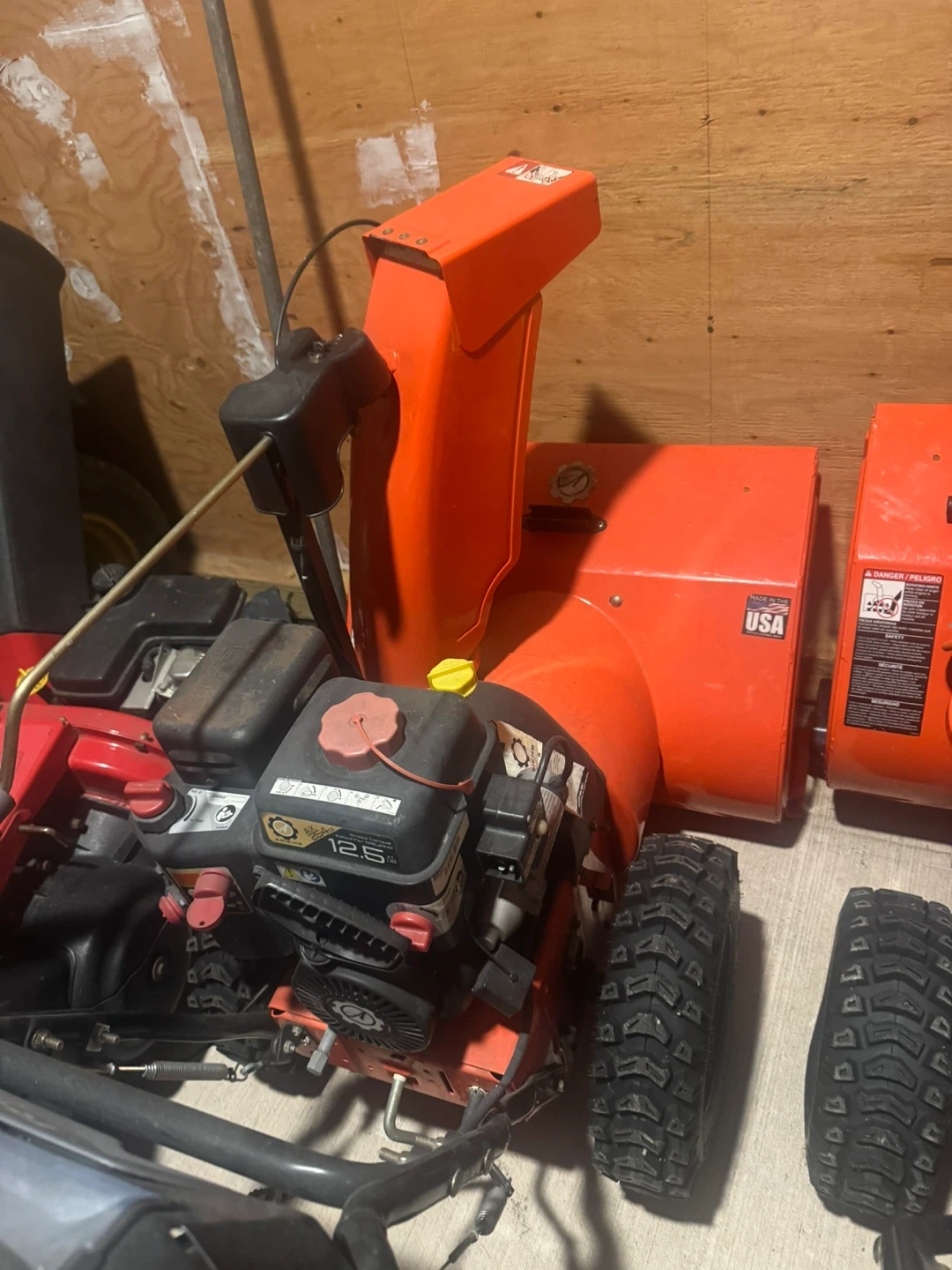 Selling two Ariens Deluxe 28 snowblower! It's in good working condition and ready to tackle some snow. It has a 12.5 engine.
