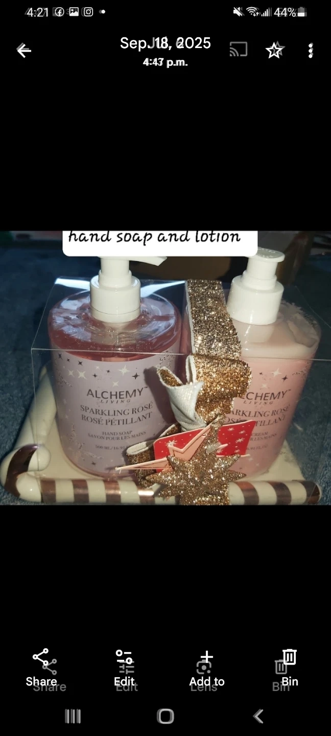 Selling an Alchemy Living hand soap and lotion set in the Sparkling Rose scent! The set includes both hand soap and lotion, perfect for adding a touch of luxury to your daily routine. The bottles are 500 mL / 16.9 fl oz each. It smells amazing!