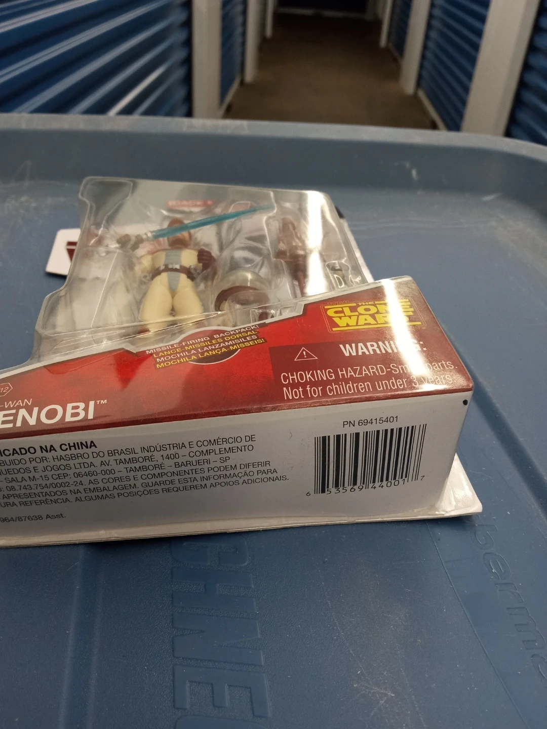 Selling a Star Wars The Clone Wars Obi-Wan Kenobi action figure. 4 and up. It includes a missile-firing backpack. Please be aware of the choking hazard warning for small parts; it's not suitable for children under 3 years. 2009