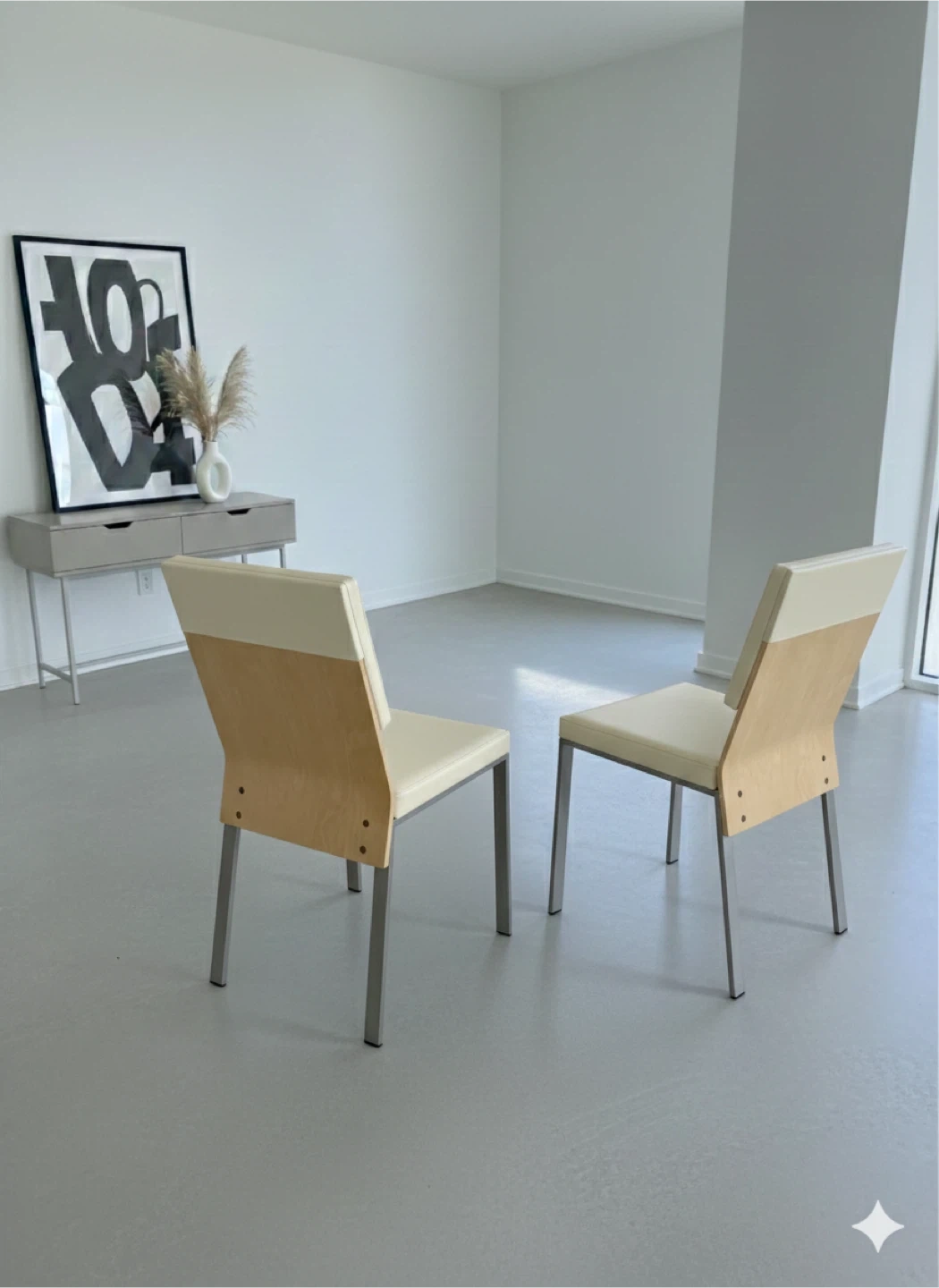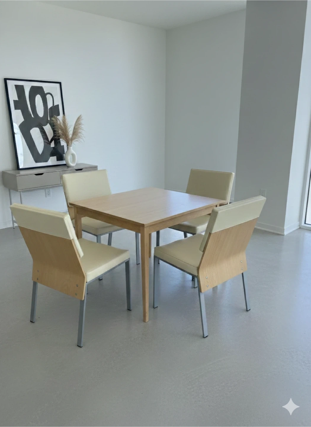 4 Modern birch wood and Vinyl seats - well made heavy comgortable chairs
