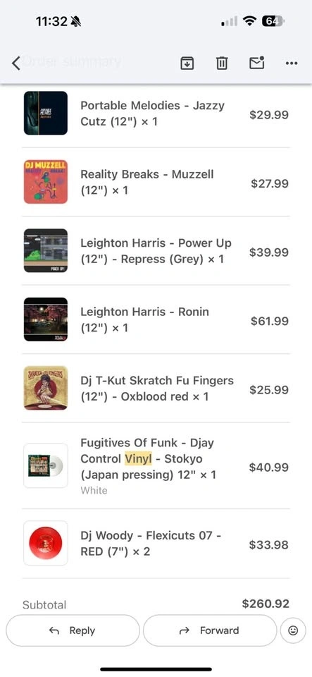 A bundle of scratch vinyl, music vinyl, and Serato control vinyl. Includes: 1 pair of Ortofon Concorde MK2 Mix Twin needles, 2 vinyl brushes, and 2 Dr.Suzuki slip mats. The second picture shows a few of the included items. All items are included for the current asking price.