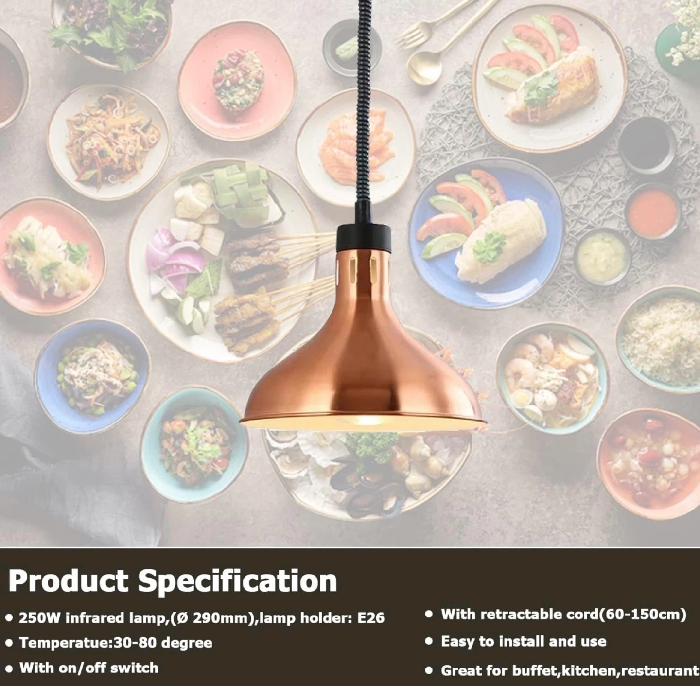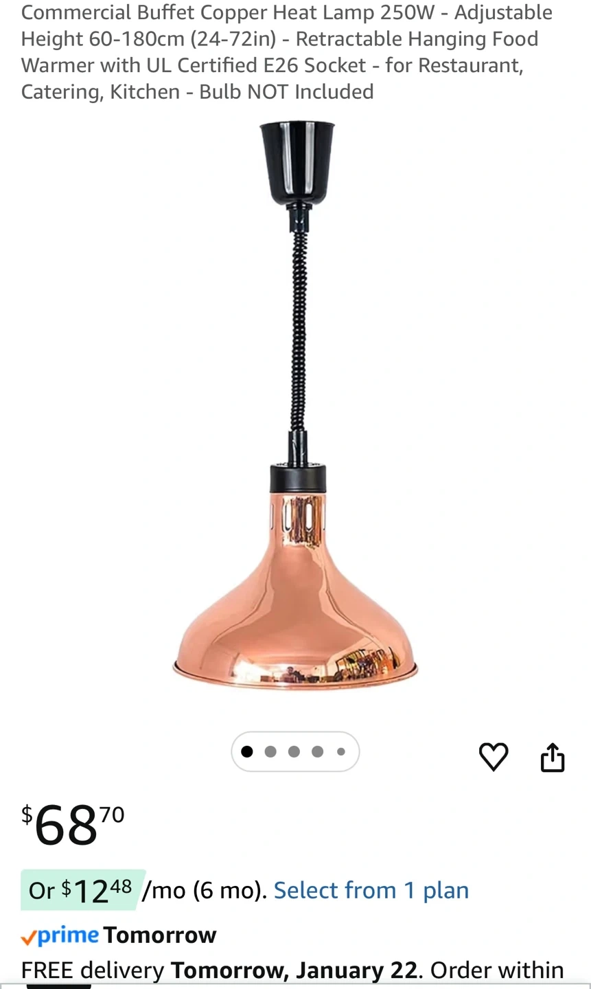 New in box! Commercial Buffet Copper Heat Lamp 250W Food Warmer