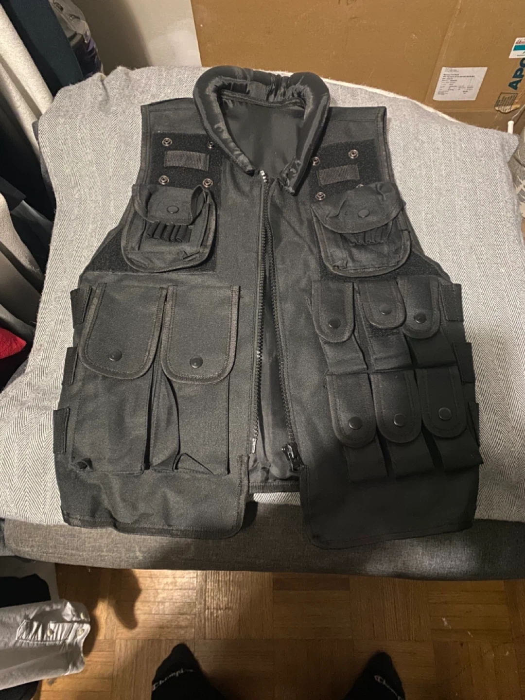 Selling a black tactical vest. in good condition, with multiple pockets and straps. Perfect for tactical activities, fashion or cosplay