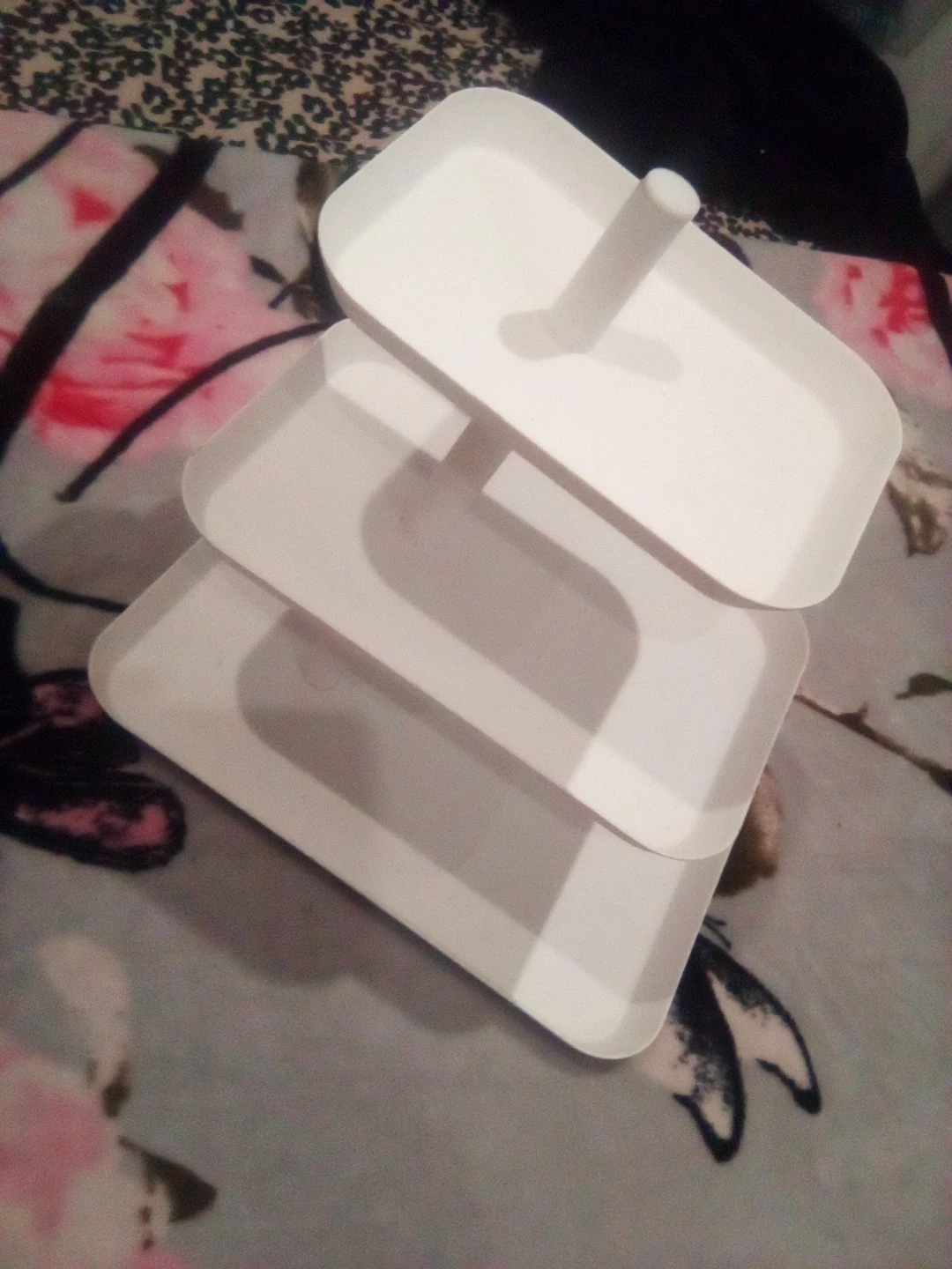 Selling a white 3-tier serving tray. It's perfect for displaying appetizers, desserts, or even jewelry! It's in great condition and ready for a new home