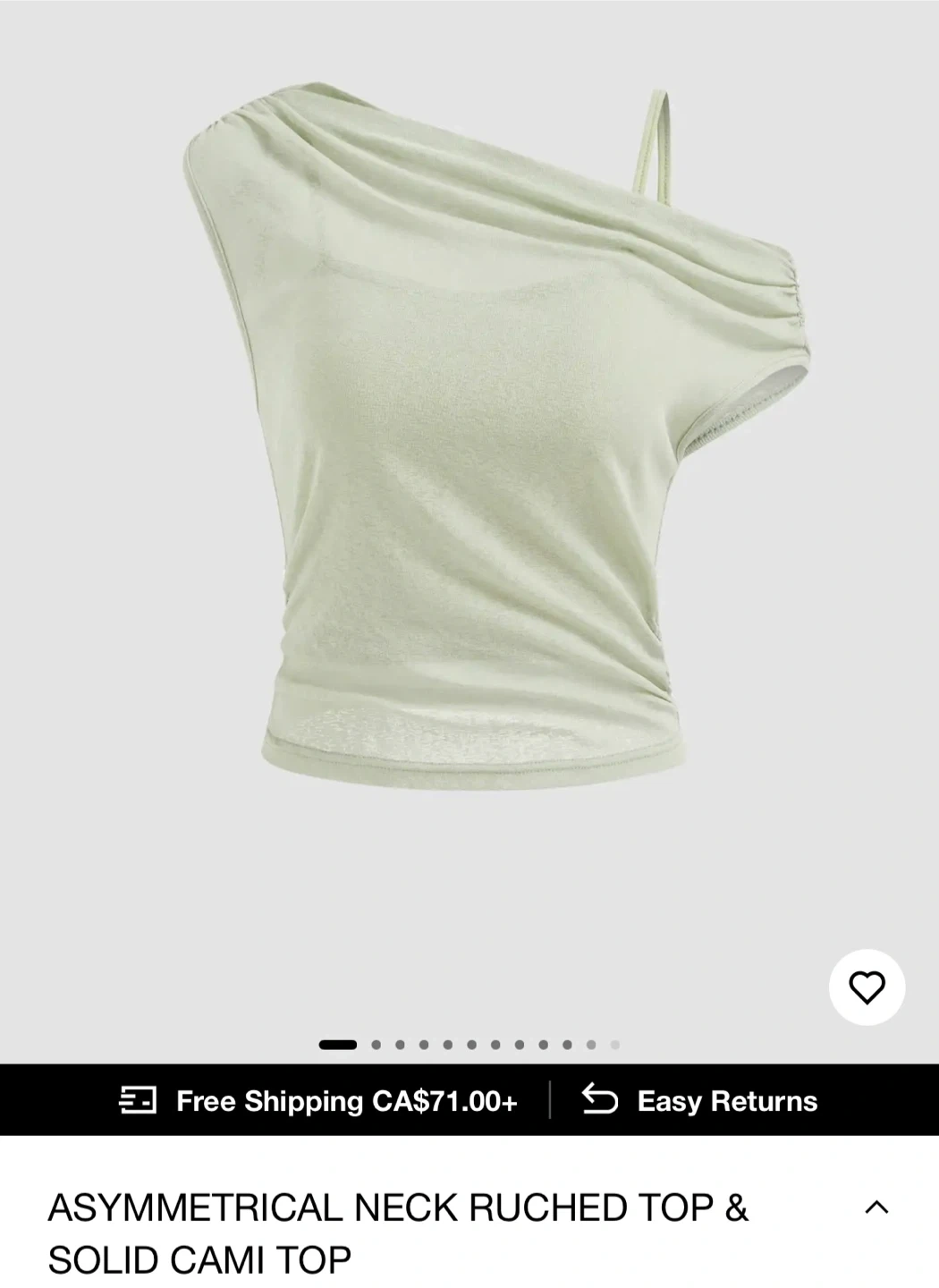 Cider ASYMMETRICAL NECK RUCHED TOP & SOLID CAMI TOP