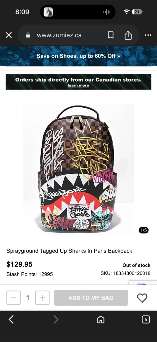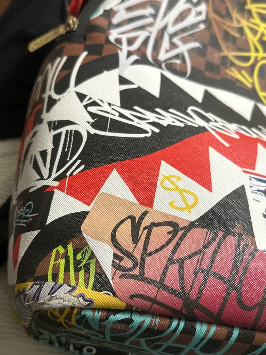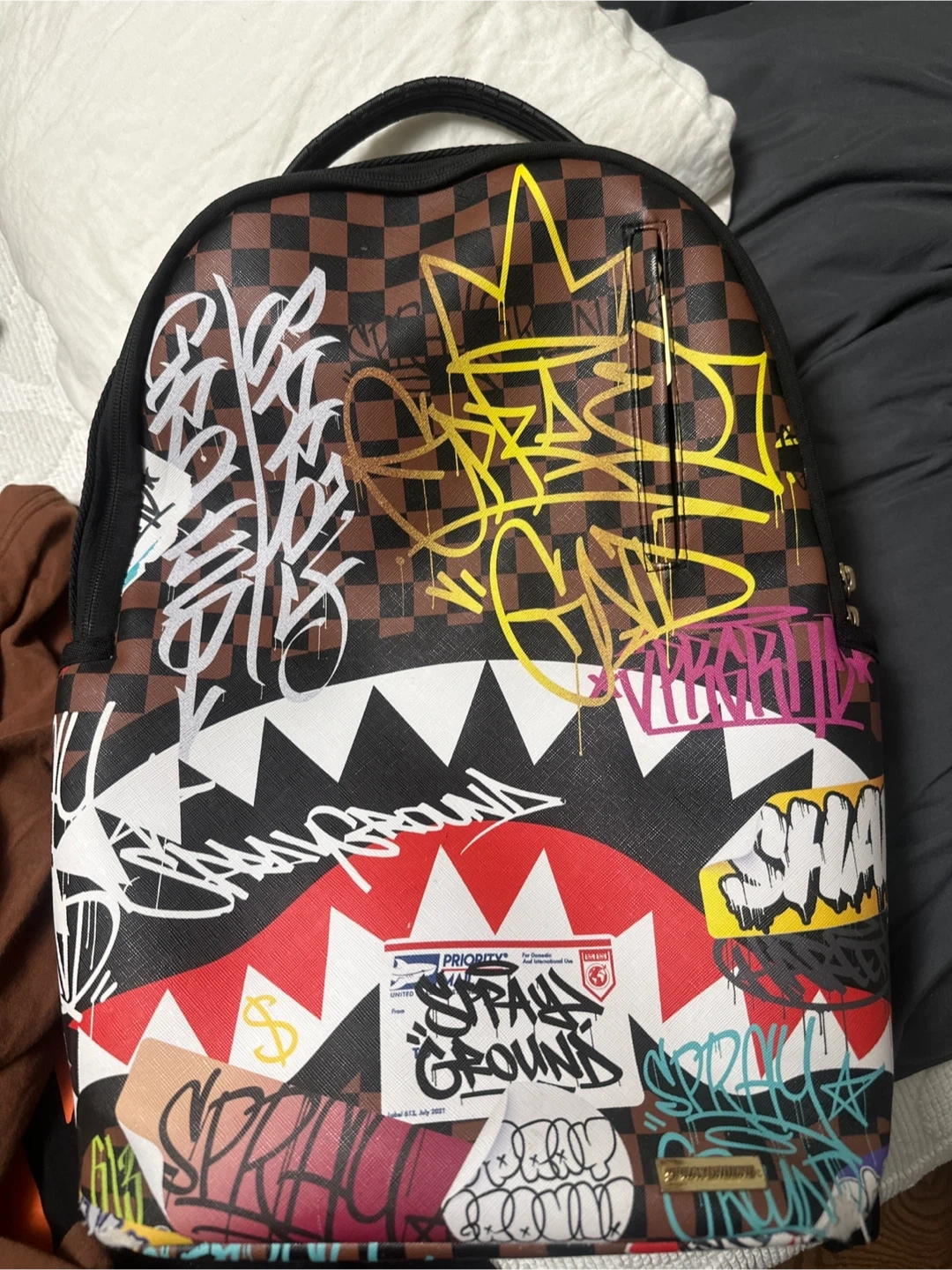 Selling a Sprayground backpack with a Tagged Up Sharks In Paris design! It's in great condition and has a unique, eye-catching look. Originally bought for $129.95
