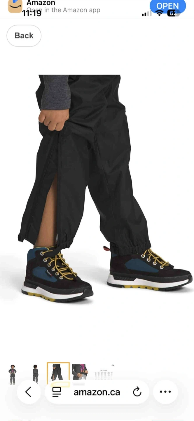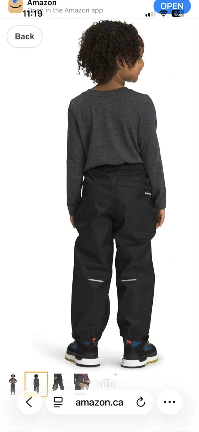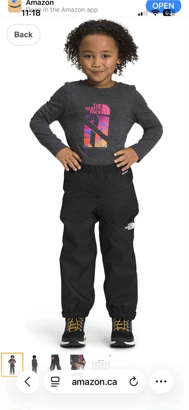These kids' snow pants from The North Face are perfect for keeping your little one warm and dry during winter activities! They are black and appear to be in great condition. They look like they're made of a durable, waterproof material, ready for snow and fun!