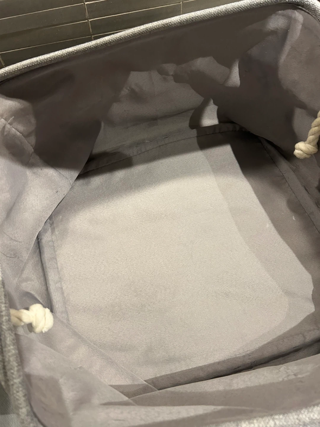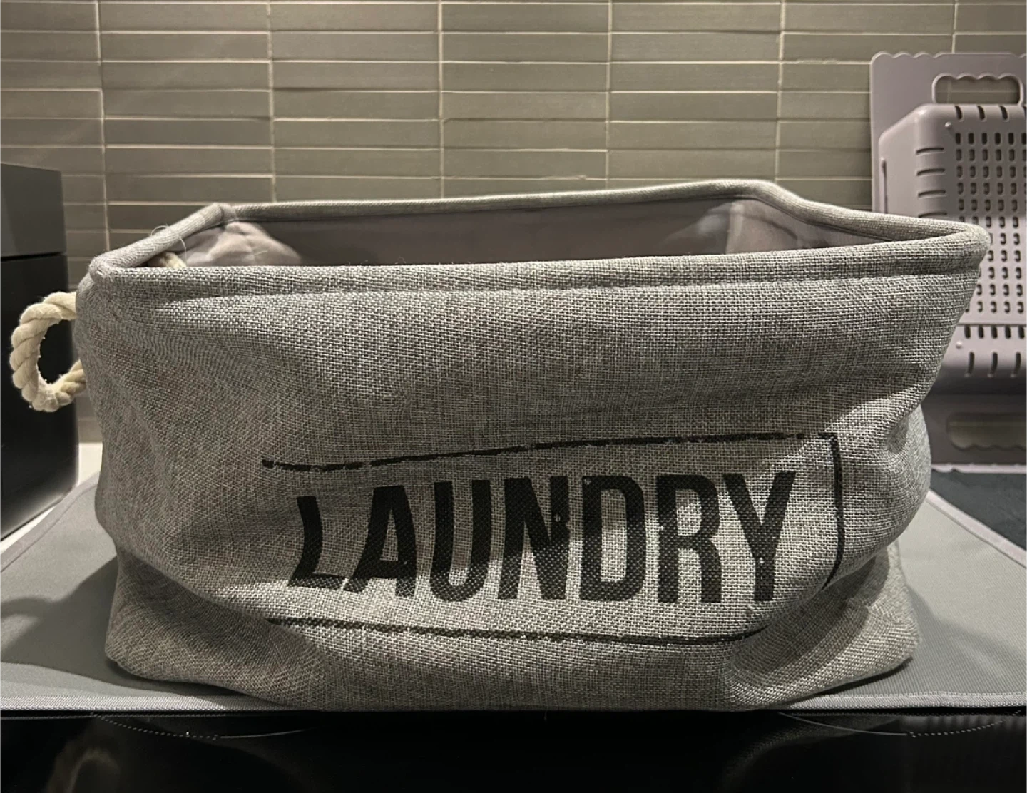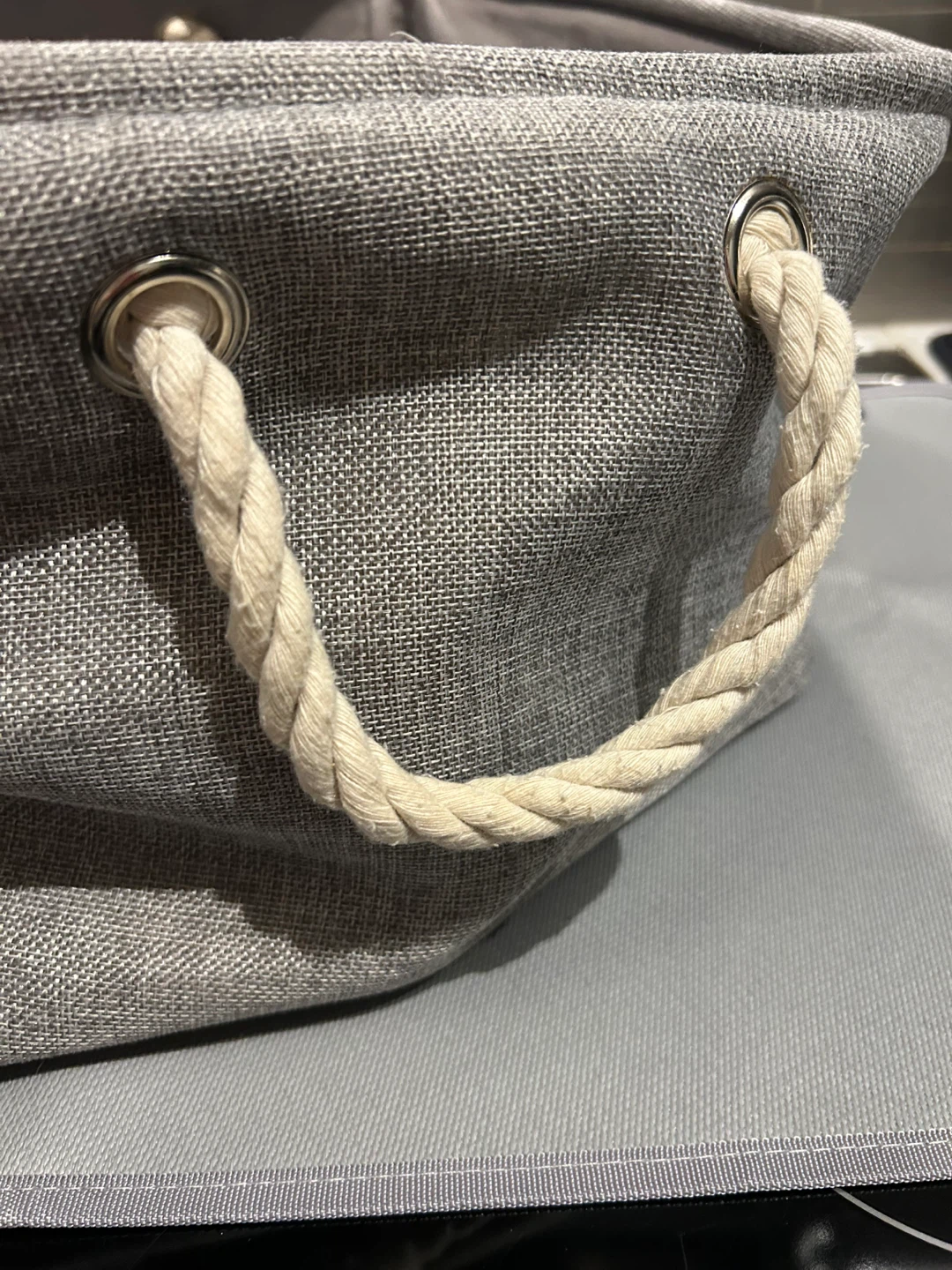 Grey Laundry Basket with Rope Handles
