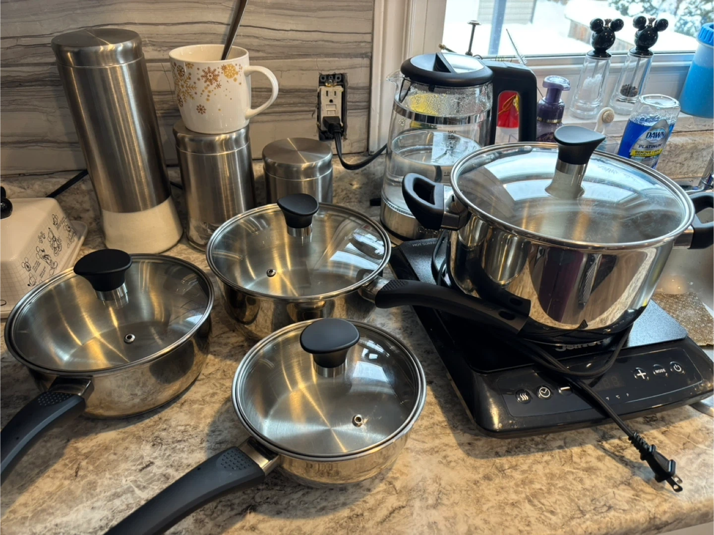 Selling a Vida by Paderno stainless steel cookware set. It's in great condition and ready for a new home. Also included is a Salton induction cooktop, perfect for efficient and precise cooking. This set is perfect for a college student in residence or rental.