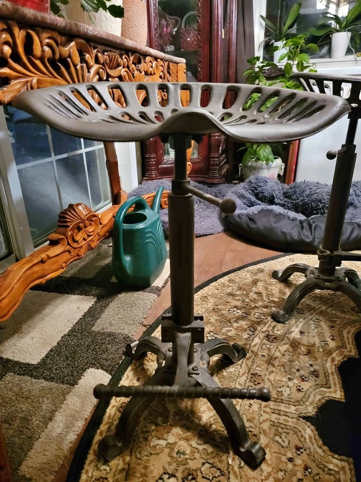 I have 4 tractor seat bar stools in excellent condition. They are all height adjustable, very heavy, and made of cast iron. Asking $50 each.