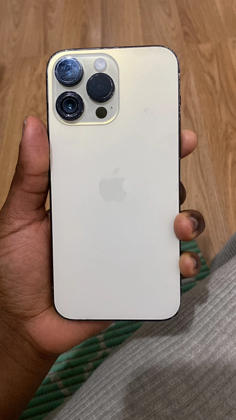 Selling an iPhone 14 Pro Max ,128 gig, brand new front and back screen. Battery 69%, comes with two cases and I phone box. One camera lens bad. OBO