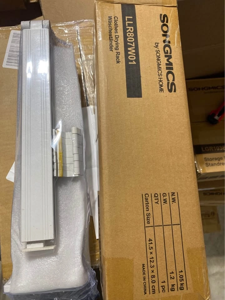 Pick up: Brock Road and Rex Heath Drive in Pickering. NO HOLDS. Unassembled - all parts confirmed complete. Dry smarter, save space, and keep things tidy! The SONGMICS Wall-Mounted Clothes Drying Rack is perfect for small spaces. Its foldable, extendable arms and 21 swivel hooks make it easy to dry clothes, towels, or delicates without clutter. When not in use, simply fold it flat against the wall — perfect for laundry rooms, bathrooms, or balconies. Stylish, sturdy, and space-saving — the modern way to air-dry!