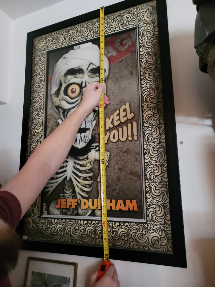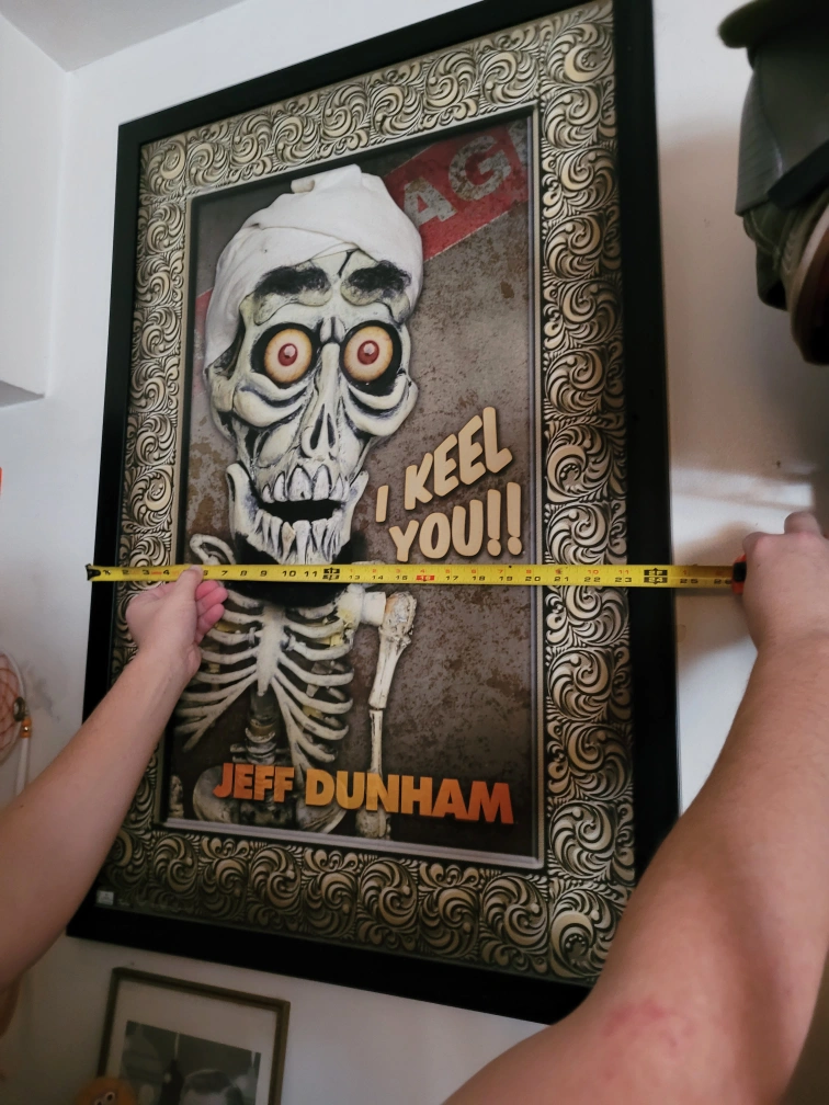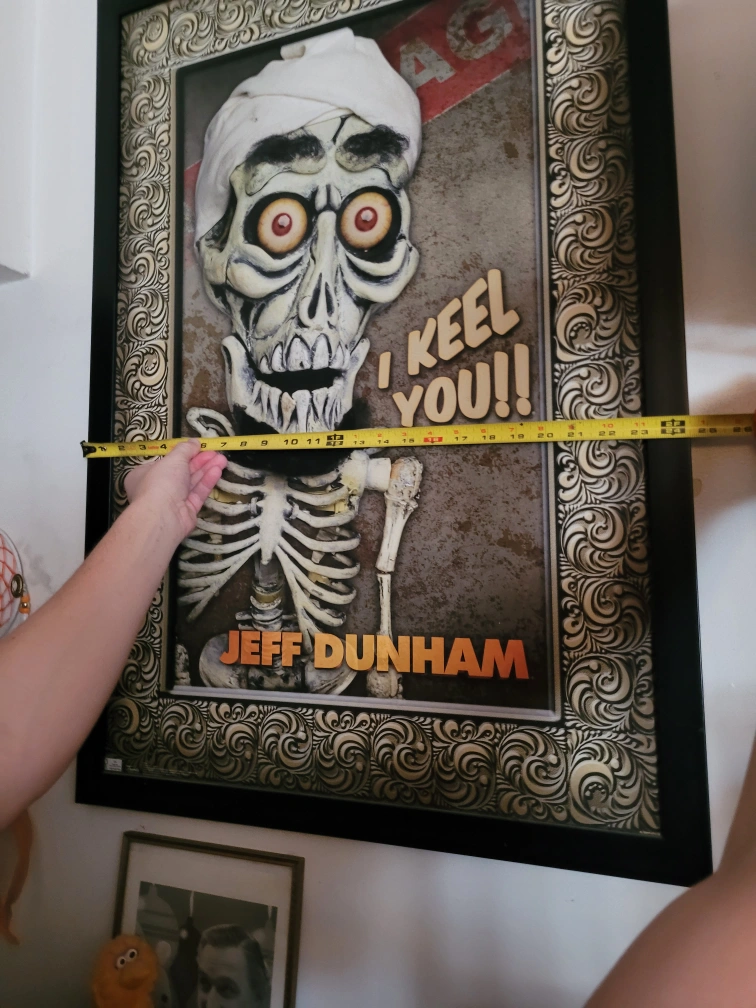 Selling a framed poster of Jeff Dunham's Achmed the Dead Terrorist. The frame measures approximately 25 inches wide and 35 inches tall