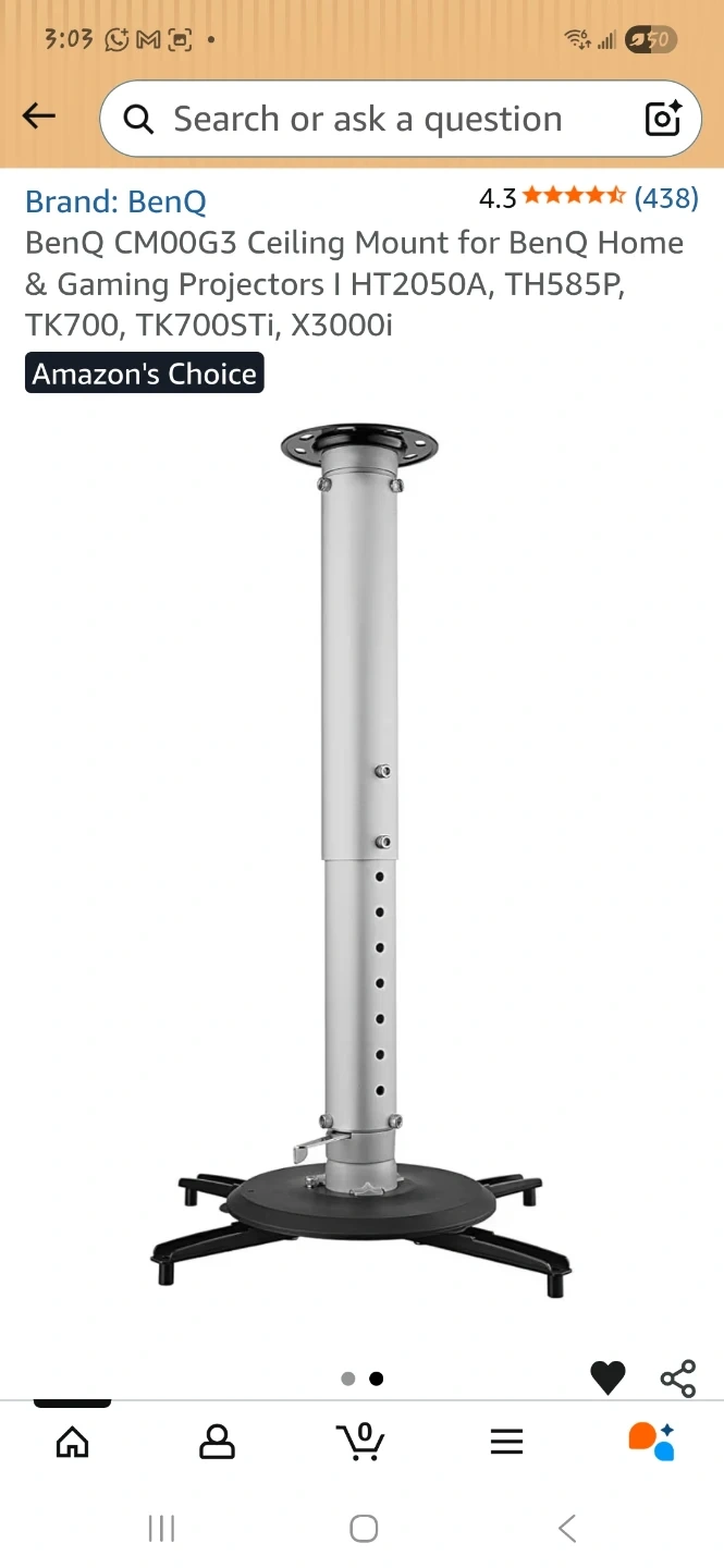 Selling a BenQ CM00G3 ceiling mount designed for BenQ home and gaming projectors, including models like HT2050A, TH585P, TK700, TK700STi, and X3000i. It's in great shape and ready to be installed
