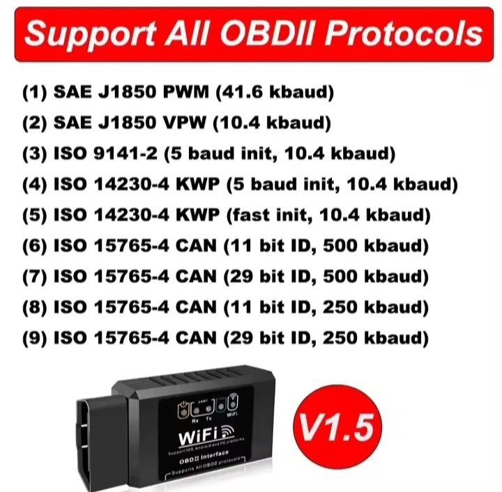 - Supports all OBDII protocols