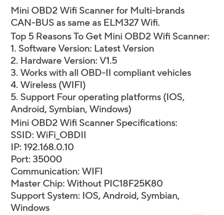 ELM327 WiFi OBDII Code Reader V1.5