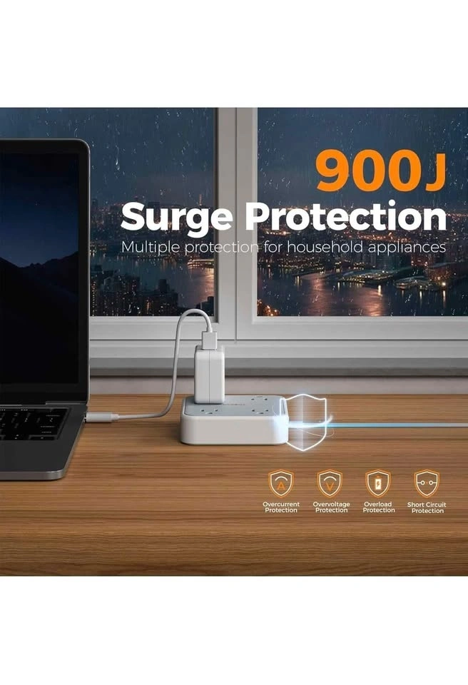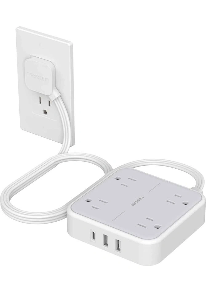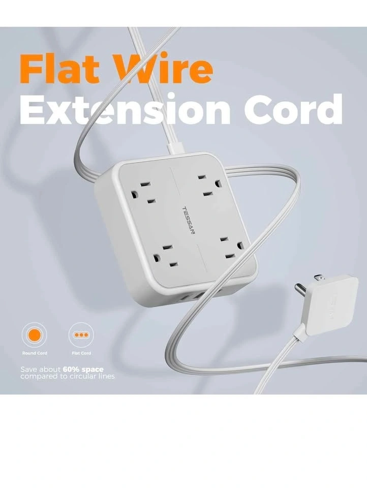 Tessan flat Plug extension cord with usb