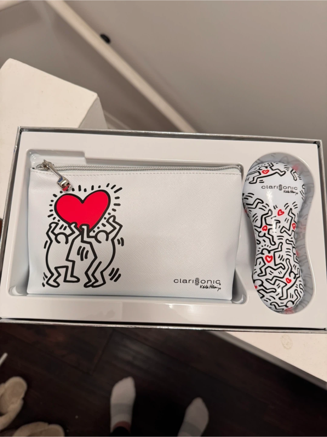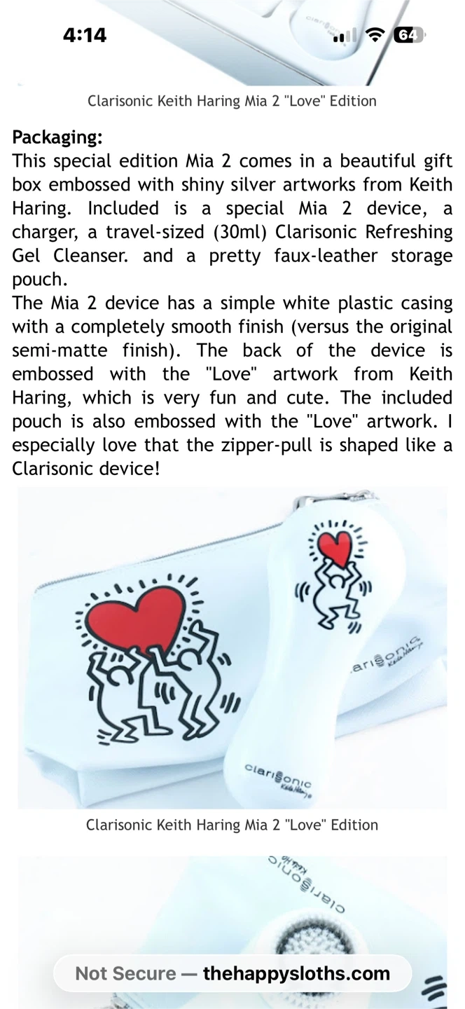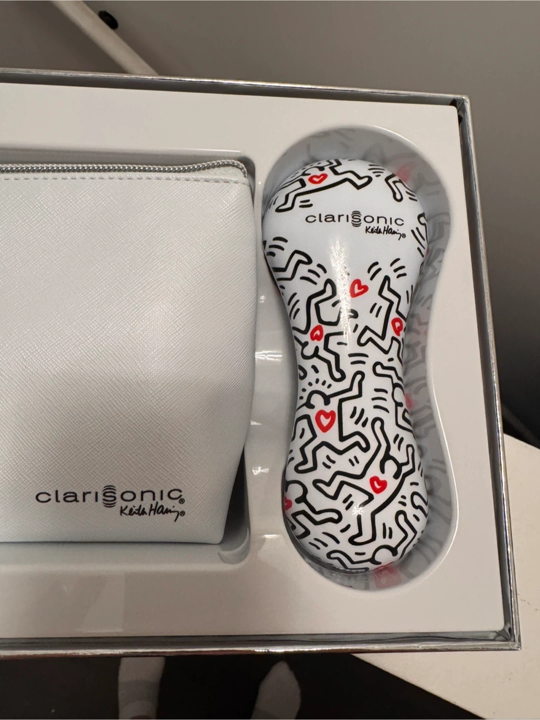 Selling a brand new Clarisonic Keith Haring Mia 2 "Love" Edition! This special edition comes in a beautiful gift box embossed with shiny silver artworks by Keith Haring. Included is a special Mia 2 device, a charger, a travel-sized (30ml) Clarisonic Refreshing Gel Cleanser, and a pretty faux-leather storage pouch. The Mia 2 device has a simple white plastic casing with a completely smooth finish. The back of the device is embossed with the "Love" artwork from Keith Haring, which is very fun and cute! The included pouch is also embossed with the "Love" artwork. The zipper-pull is shaped like a Clarisonic device. Brand new and never used. Only opened box to take pics. Paid 180+HST at Holts