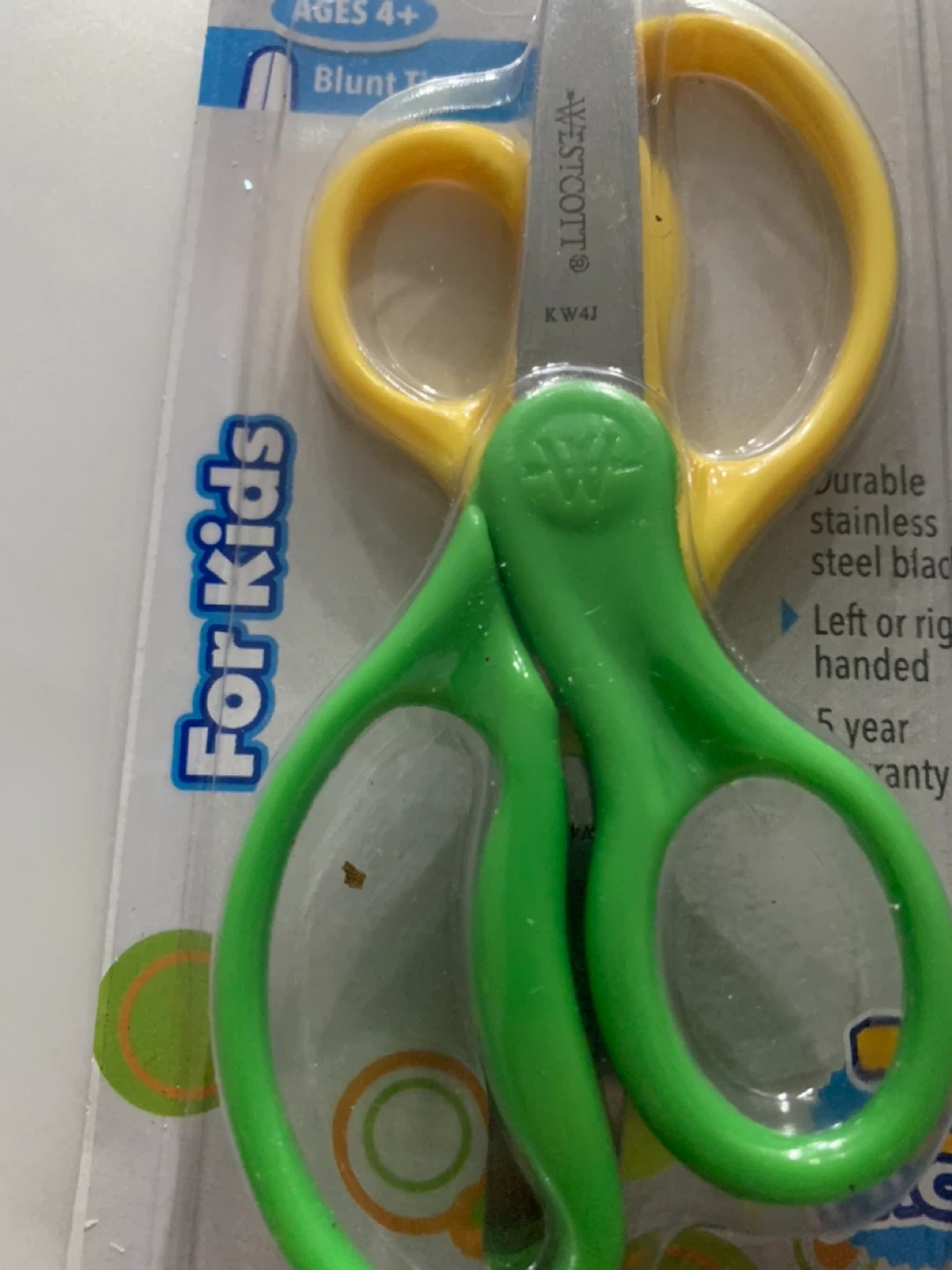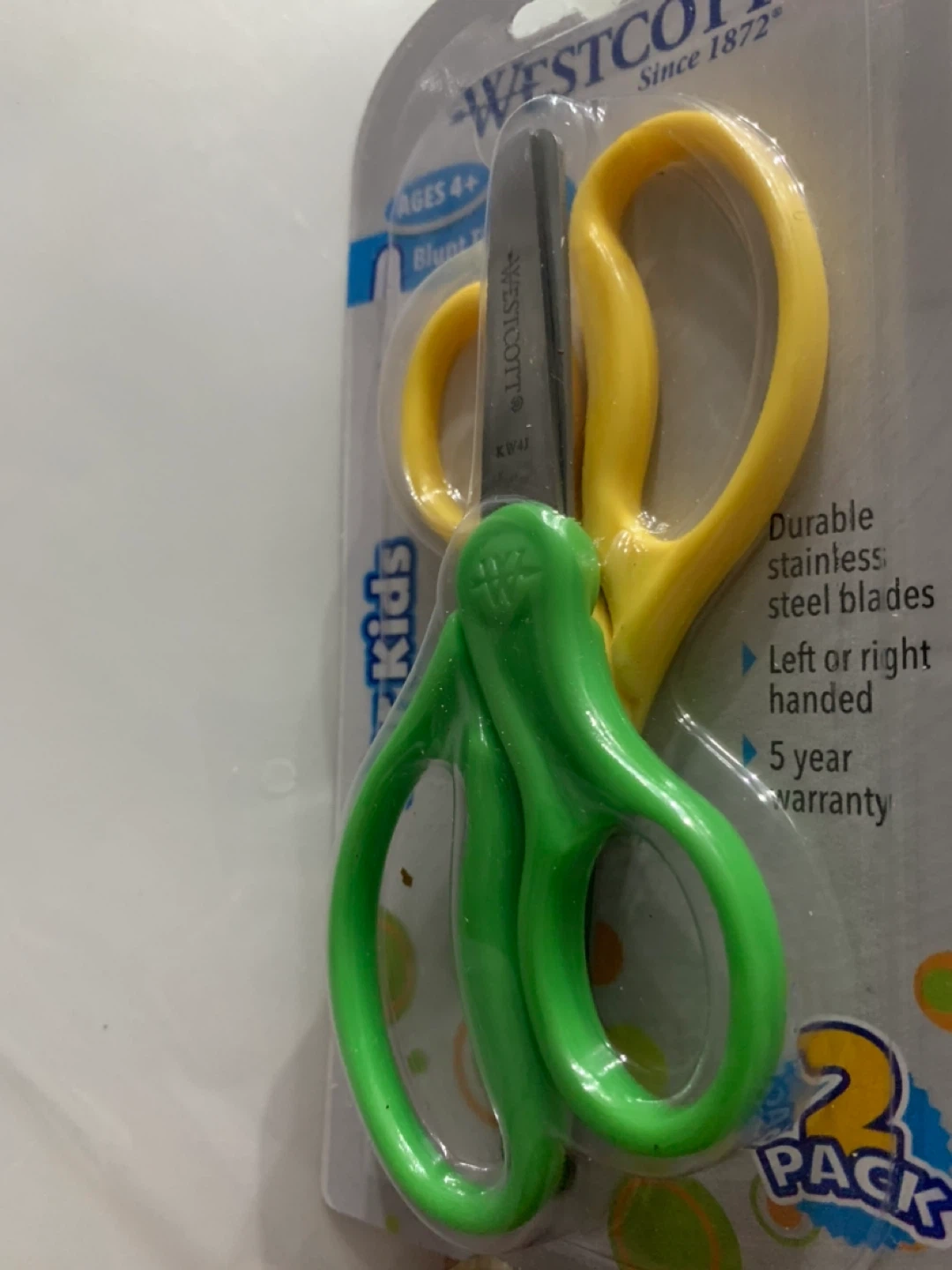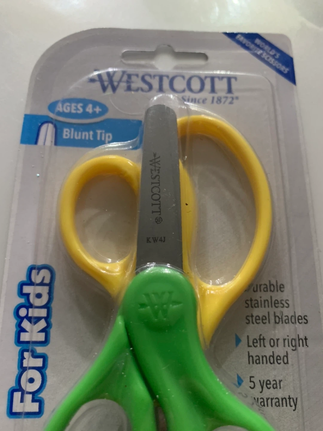 Selling a brand new pack of Westcott kids scissors! These are designed for ages 4 and up and feature a blunt tip for safety. They're perfect for little hands and can be used by both lefties and righties. Durable stainless steel blades with a 5-year warranty included