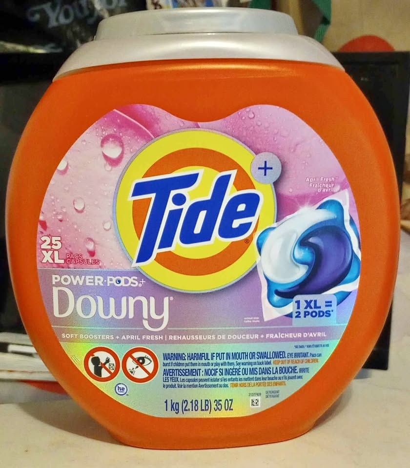 Selling a 25-pack container of Tide POWER PODS + Downy