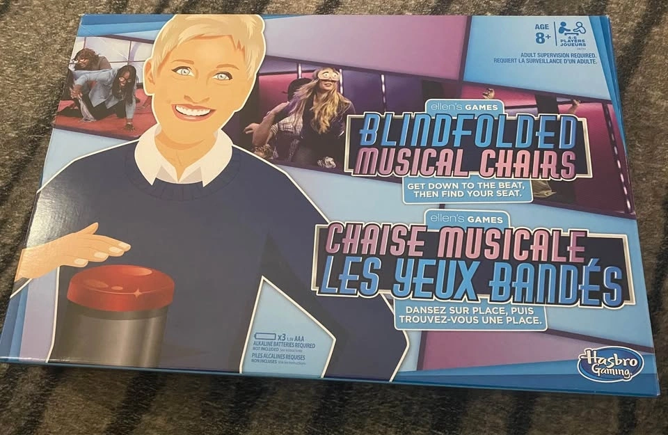 4 fun board games for the family! Game of Life, Clue Junior, Mousetrap, Blindfolded Musical Chairs (Ellen Degeneres).
